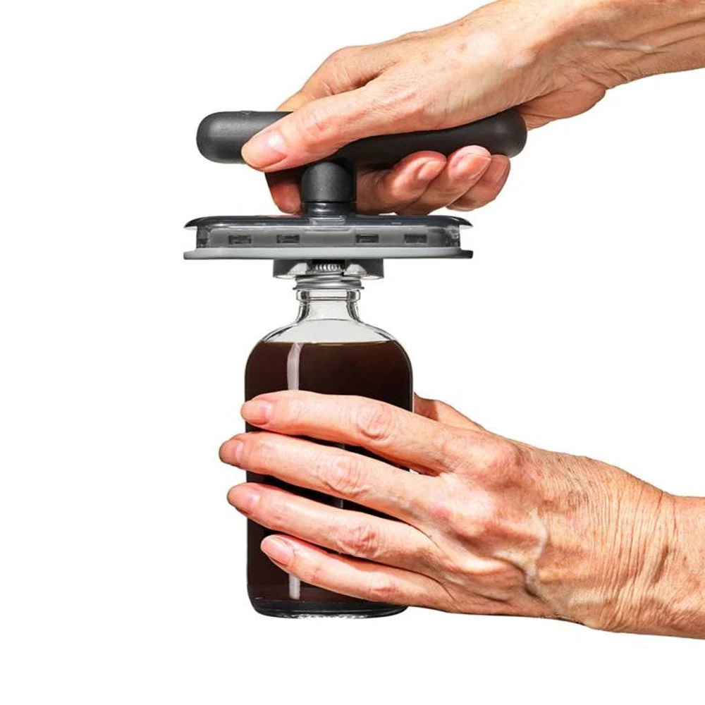 Con Abridor de Frascos Giratorio Oxo sera muy facil abrir tus frascos y tapas con un simple giro. Incluye una novedosa base antideslizante para poner bajo el frasco que agrega estabilidad y lo mantiene en su lugar al abrirlo. Además, el abridor se adapta al tamaño de la tapa que necesitas abrir, ya sea grande o pequeña. Simplemente pon el frasco sobre la base, posiciona el abridor sobre la tapa y ciérralo hasta el tamaño que necesites. Luego gíralo en sentido contra reloj para abrir la tapa y listo! Para guardarlo de manera compacta, la base antideslizante se dobla y engancha al abridor.