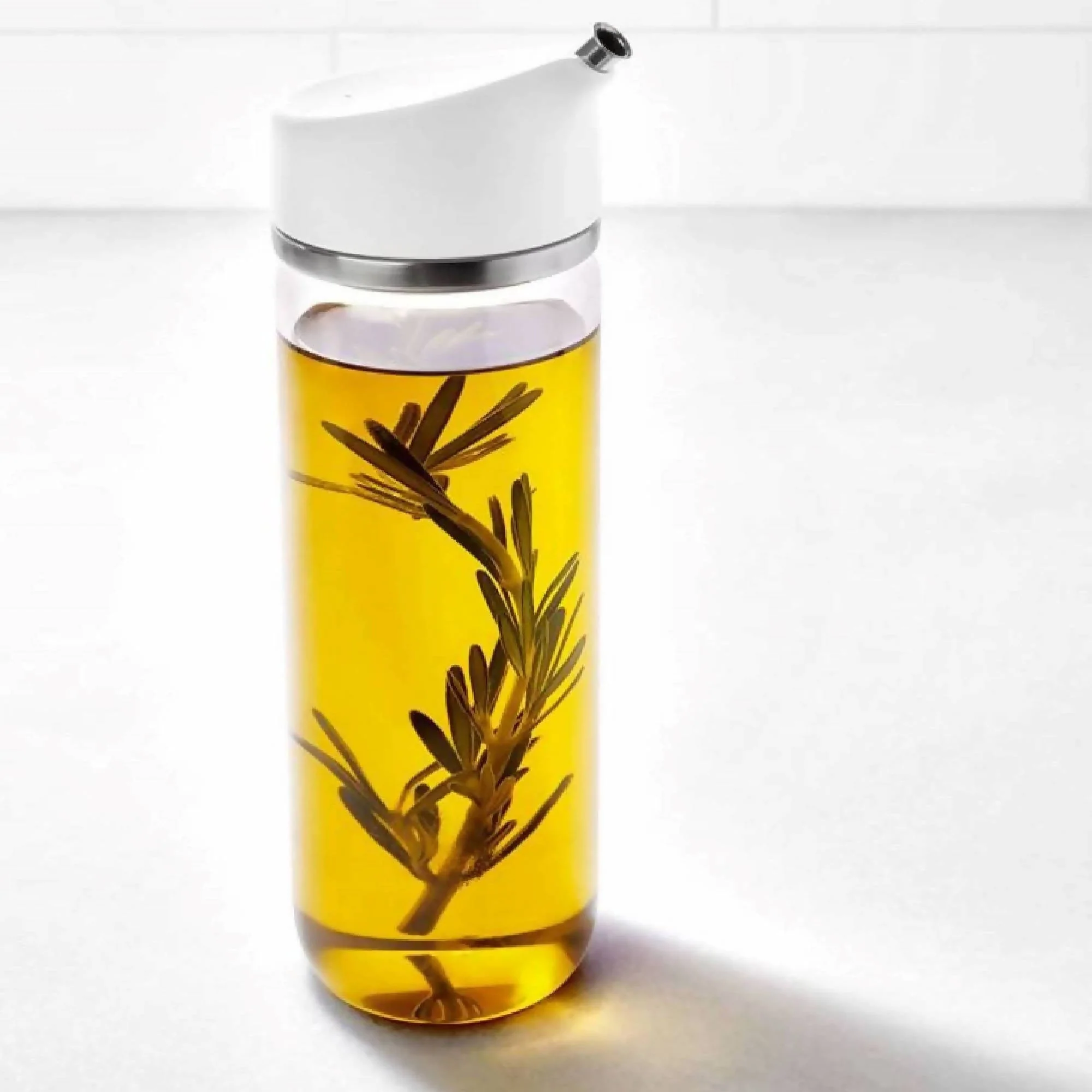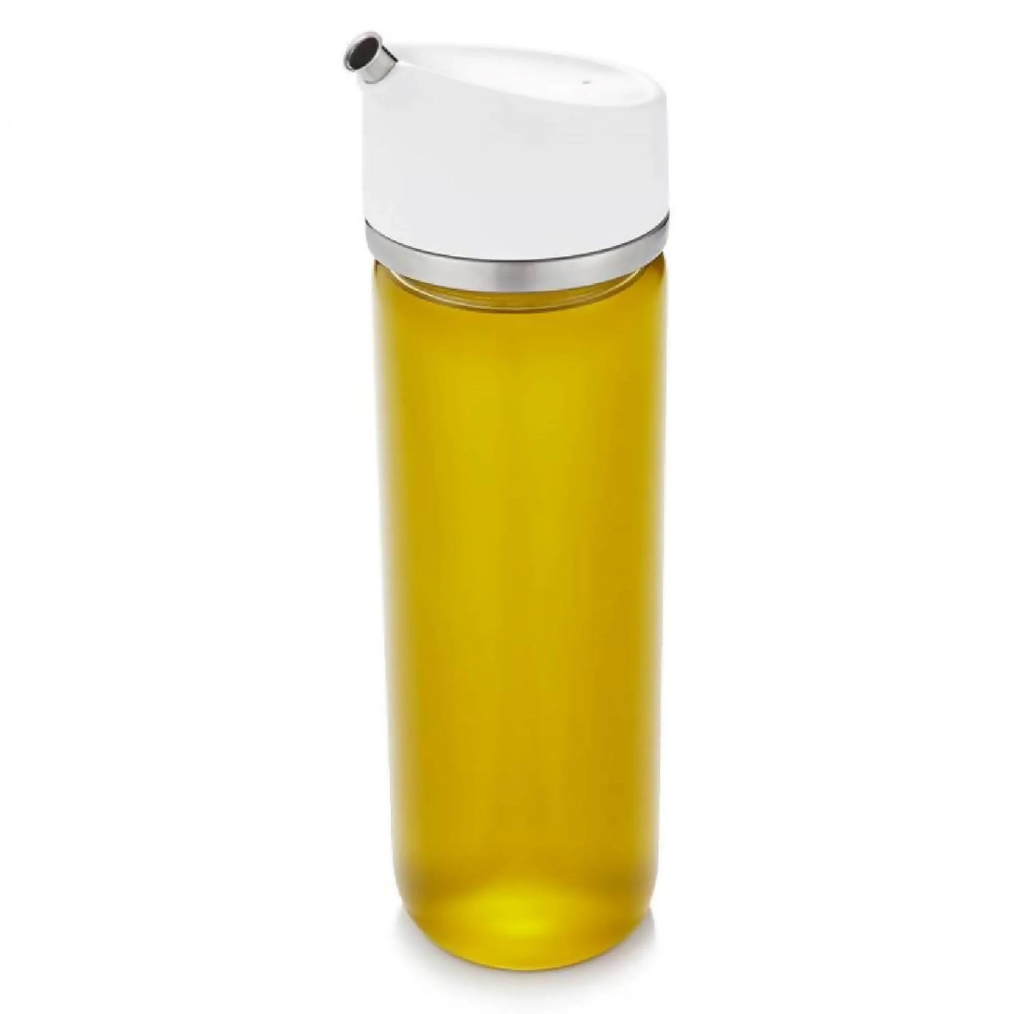 La Aceitera Precisión 350ml Oxo tiene un innovador diseño que te permite controlar la cantidad de aceite que sale con un simple movimiento de muñeca. Inclina la aceitera levemente para dispensar un poco aceite para aliñar ensaladas, o inclínala más para dispensar un flujo constante de aceite para cocinar. Su boquilla metálica tiene un doblez que evita goteos y su sello hermético interior de silicona evita derrames. Está hecha de vidrio borosilicato muy duradero con acentos metálicos, perfecta para poner en la mesa. También sirve para dispensar vinagre y soya, y su tapa de desarma completamente para poder limpiarla de manera fácil.