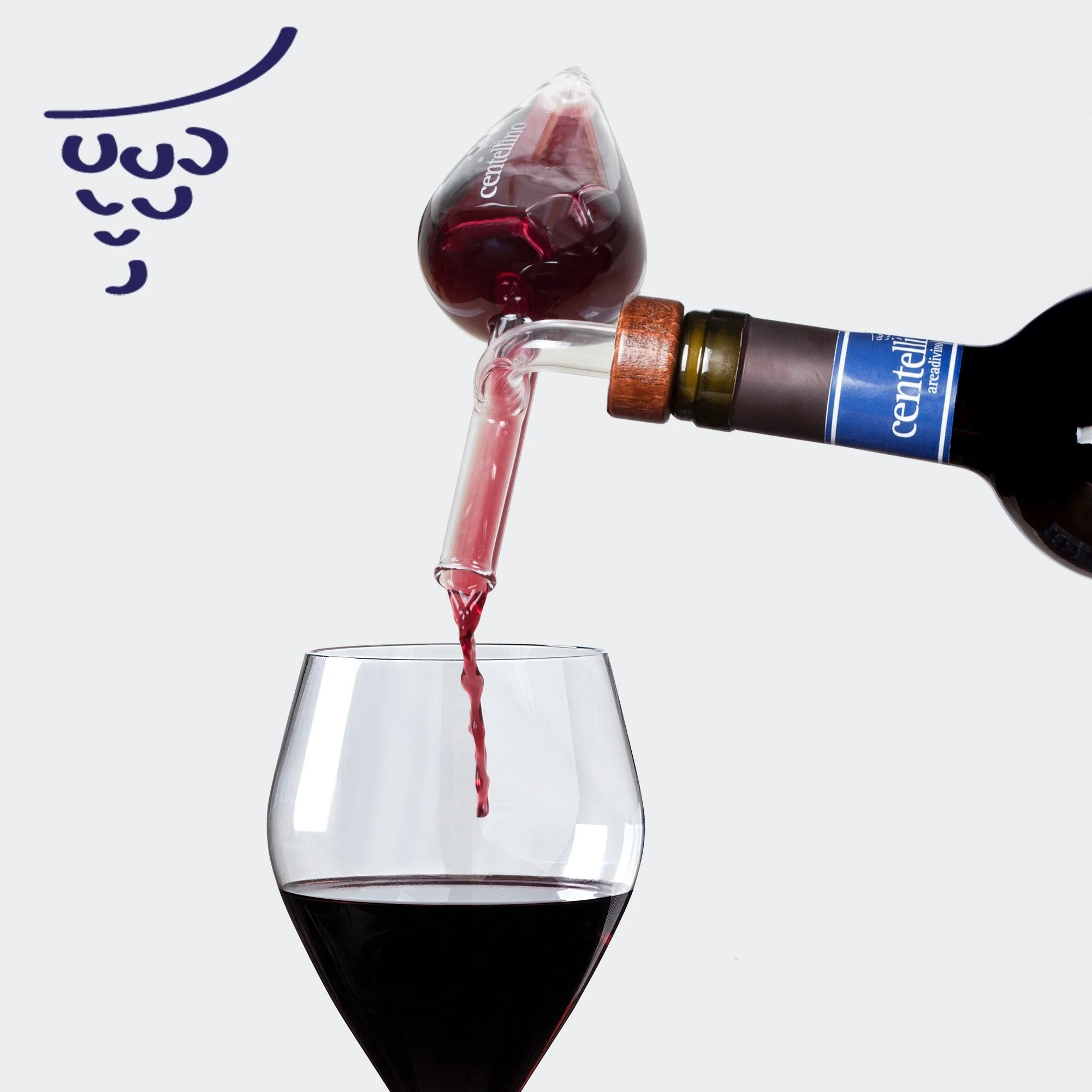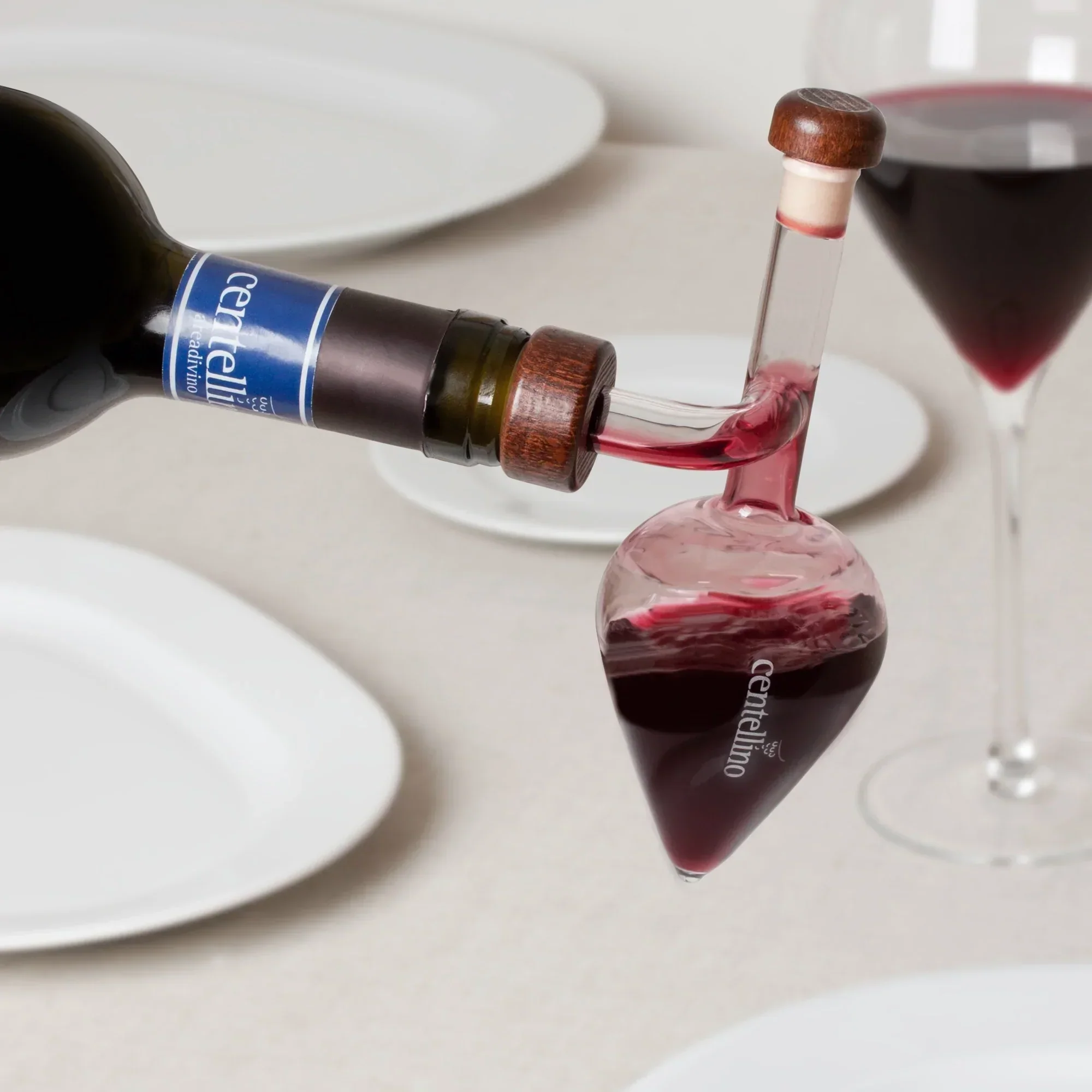 Centellino mantiene y preserva la calidad y las propiedades del vino. Al verter el vino desde la botella hacia el ánfora, este cae en una fina película por sus paredes desplegando todos sus aromas y sabores gracias a su efectiva oxigenación, con Centellino ya no tendrá que esperar 1 hora o más para que el vino alcance su máxima expresión como lo es en un decantador convencional. Recomendado por expertos a nivel mundial, su novedoso diseño, la calidad de los materiales, su singular presentación así como su contrastada funcionalidad. Centellino actúa también como un dosificador perfecto, cada copa es servida con el mismo contenido. Cada aireador decantador Centellino viene en su propia lujosa caja de regalo, ideal para regalar a los verdaderos amantes del vino; Provee la cantidad perfecta para degustar; el modelo C125/A dosifica 125cc; Decanta y abre el vino delicadamente; No provoca Traumas al vino; lo airea y oxigena; Amplifica los sabores y mantiene la identidad del vino. Sus beneficios fueron certificados con pruebas químicas y organolépticas en los laboratorios de la prestigiosa consultora enológica italiana Gruppo Matura.