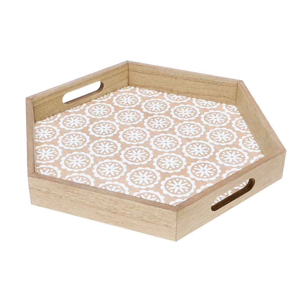 La Bandeja Agra Hexagonal Natural/Blanco BVS es la combinación perfecta entre funcionalidad y estilo. Con un diseño Hexagonal exquisitamente elaborado, esta bandeja no solo añade un toque moderno y elegante a cualquier espacio, sino que también resalta la belleza del bambú, un material naturalmente encantador y sostenible. La combinación de tonos Blanco, Natural y Blanco añade sofisticación y versatilidad, permitiéndote integrarla en diversos estilos de decoración.
