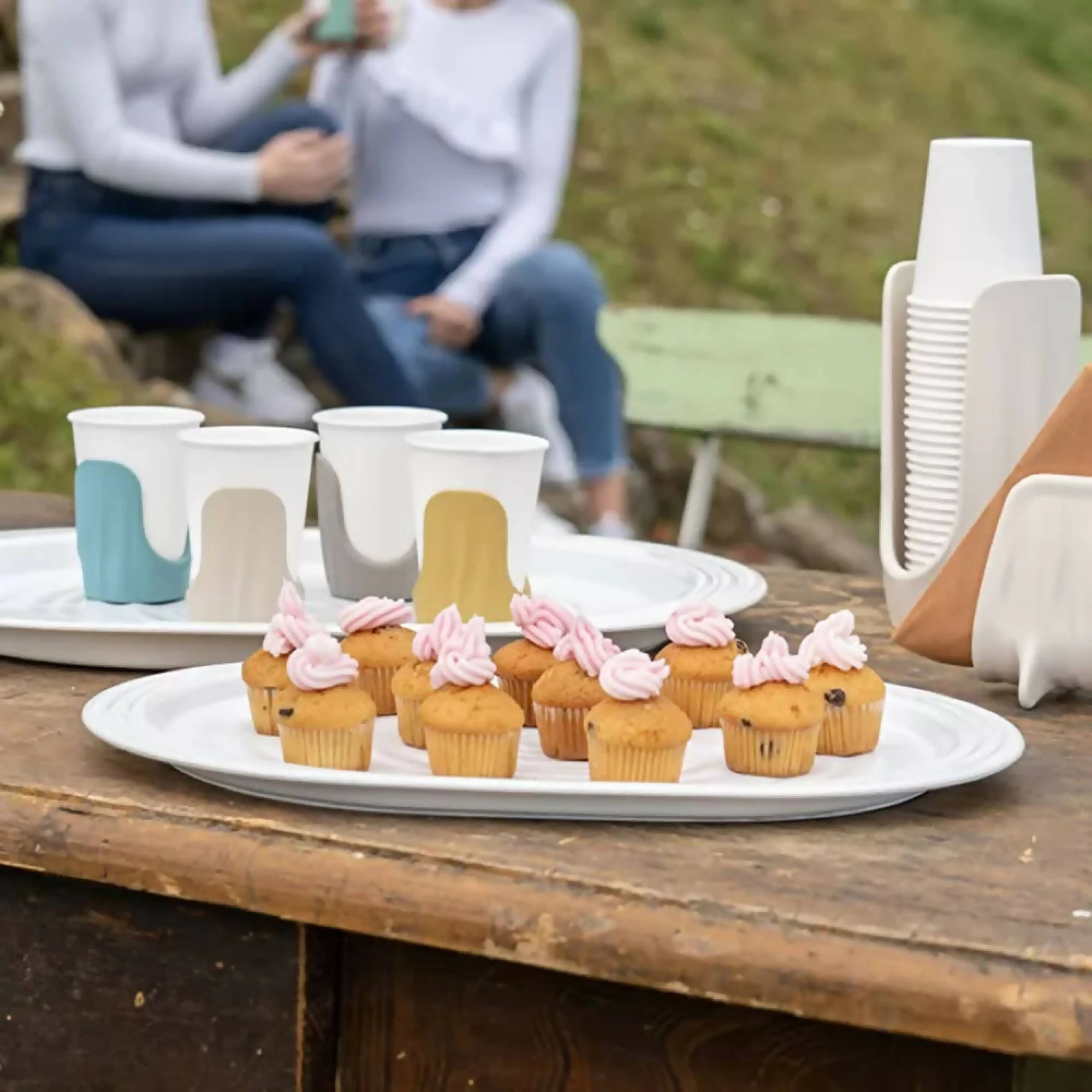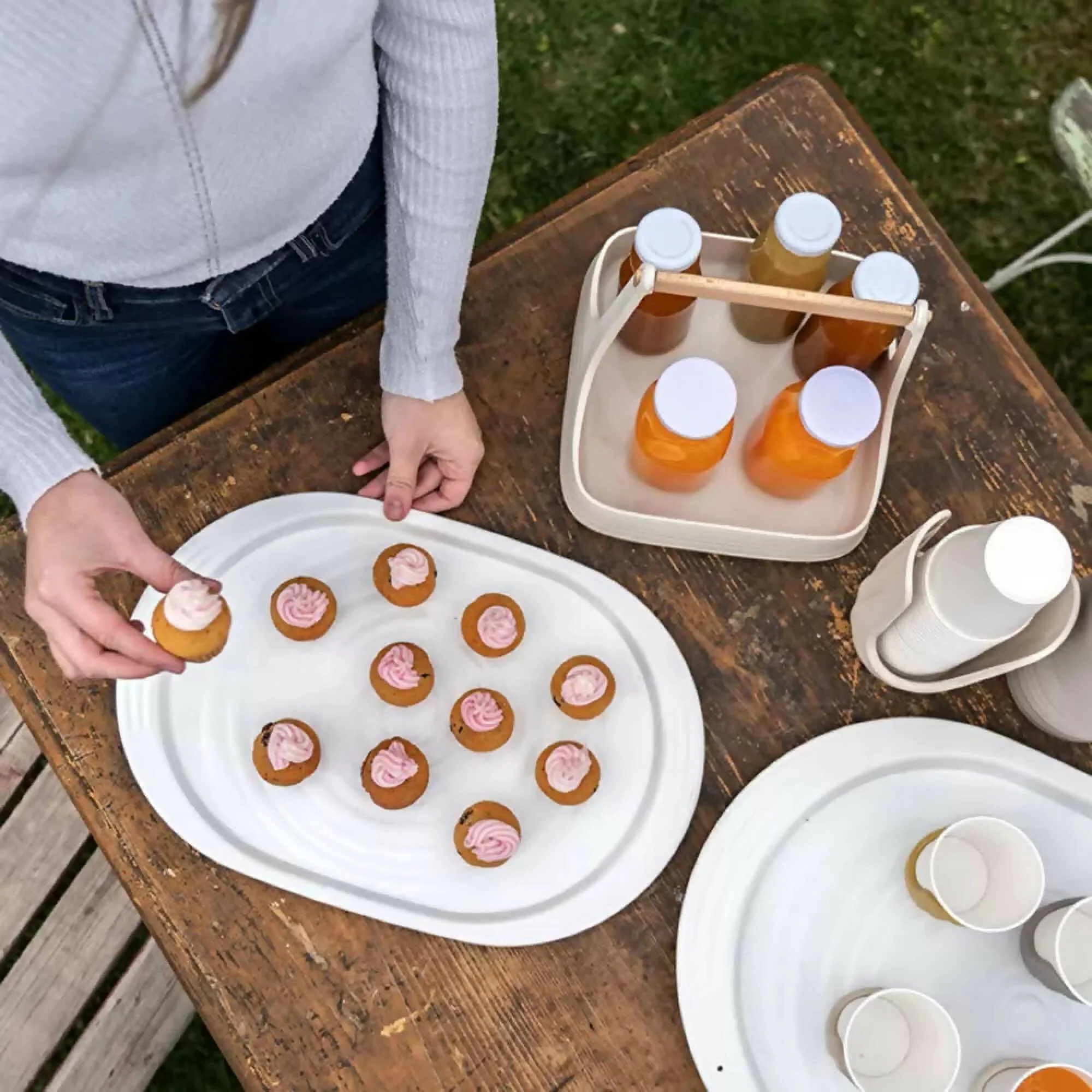 La bandeja con bordes elevados garantiza un excelente agarre y una correcta contención de los alimentos dentro de una superficie de apoyo muy amplia. Se fabrica reciclando 11,5 botellas de plástico desechables de 1,5 litros 100% post consumo.