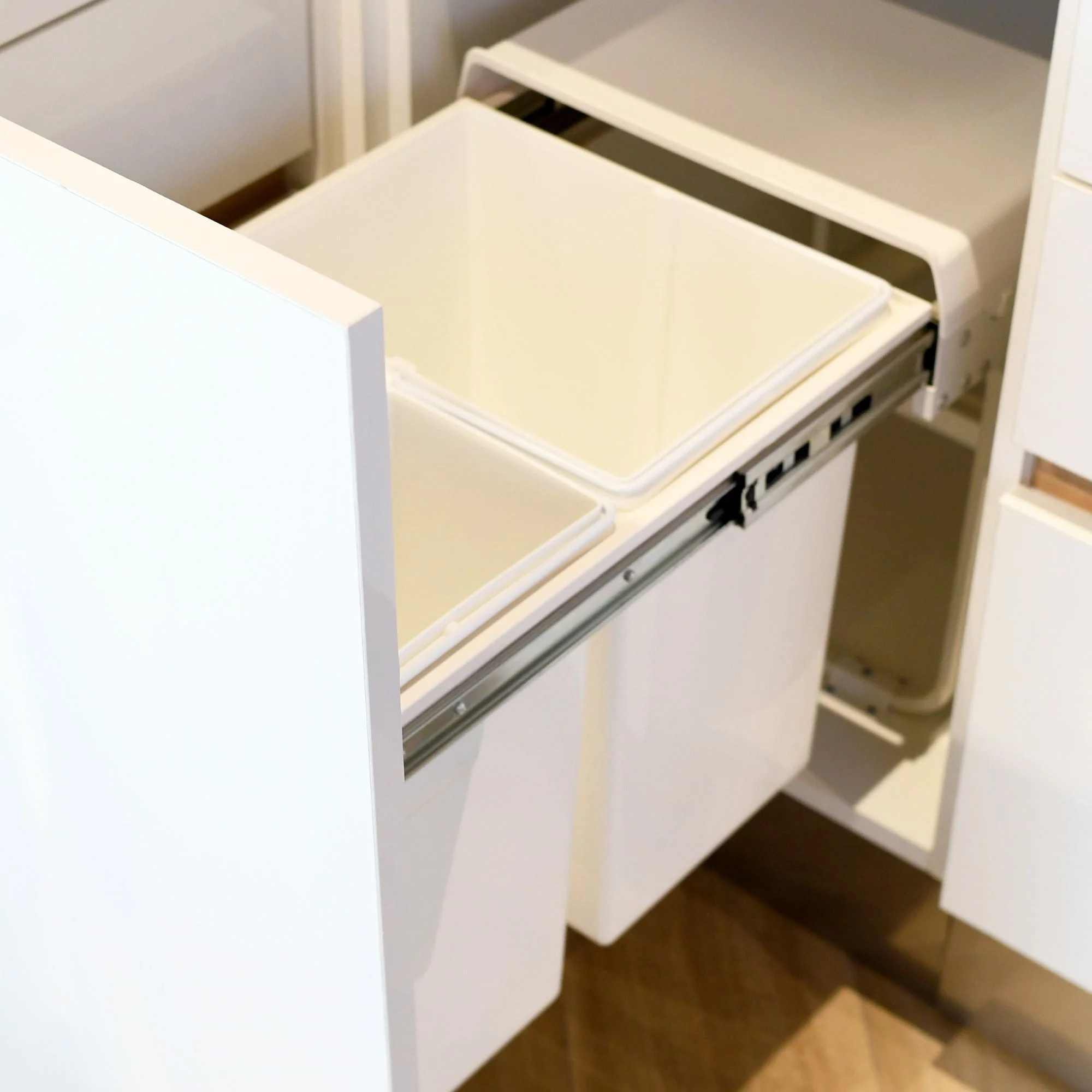 Contribuye al medio ambiente y mantén tu cocina ordenada con el Basurero de Reciclaje de 40 litros anclado a puerta de CasaChic. Este contenedor ecológico, con su sistema de cierre suave, es perfecto para la clasificación y separación de residuos. Con una capacidad total de 40 litros, dividida en dos cubetas de 20 litros cada una, facilita la gestión de residuos reciclables y no reciclables en tu hogar. Su diseño práctico y estético lo convierte en una adición valiosa para cualquier cocina, y su instalación es tan fácil, sencilla y rápida que no tendrás que preocuparte por complicaciones.