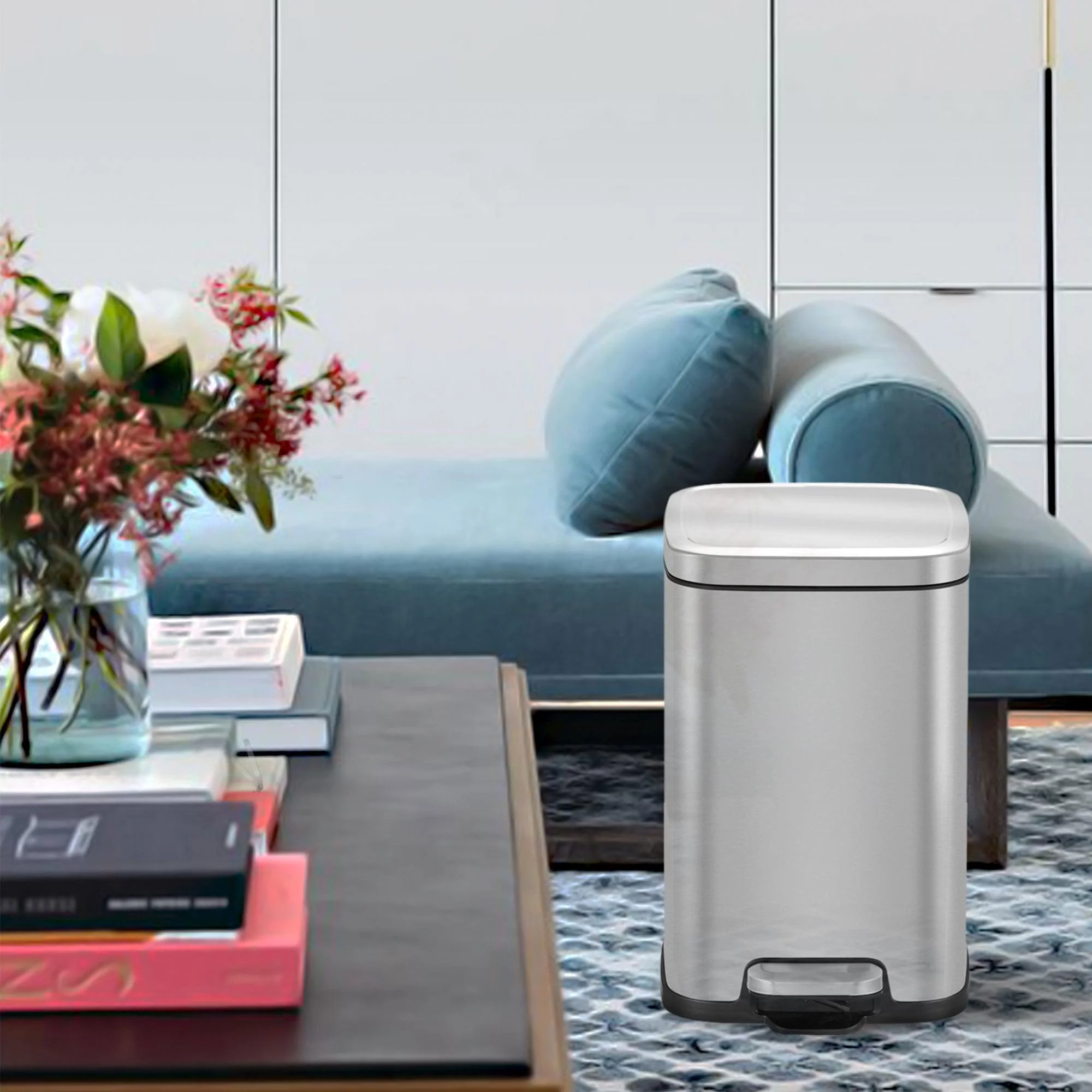 Estilo y funcionalidad en tus espacios con el Basurero Stella de EKO. Con una capacidad de 12 litros podrás ordenar y mantener limpia tu cocina. Es de acero inoxidable anti huellas, Posee pedal para abrir. Además de sistema de cierre suave y bloque para mantener la puerta abierta para mayor comodidad.