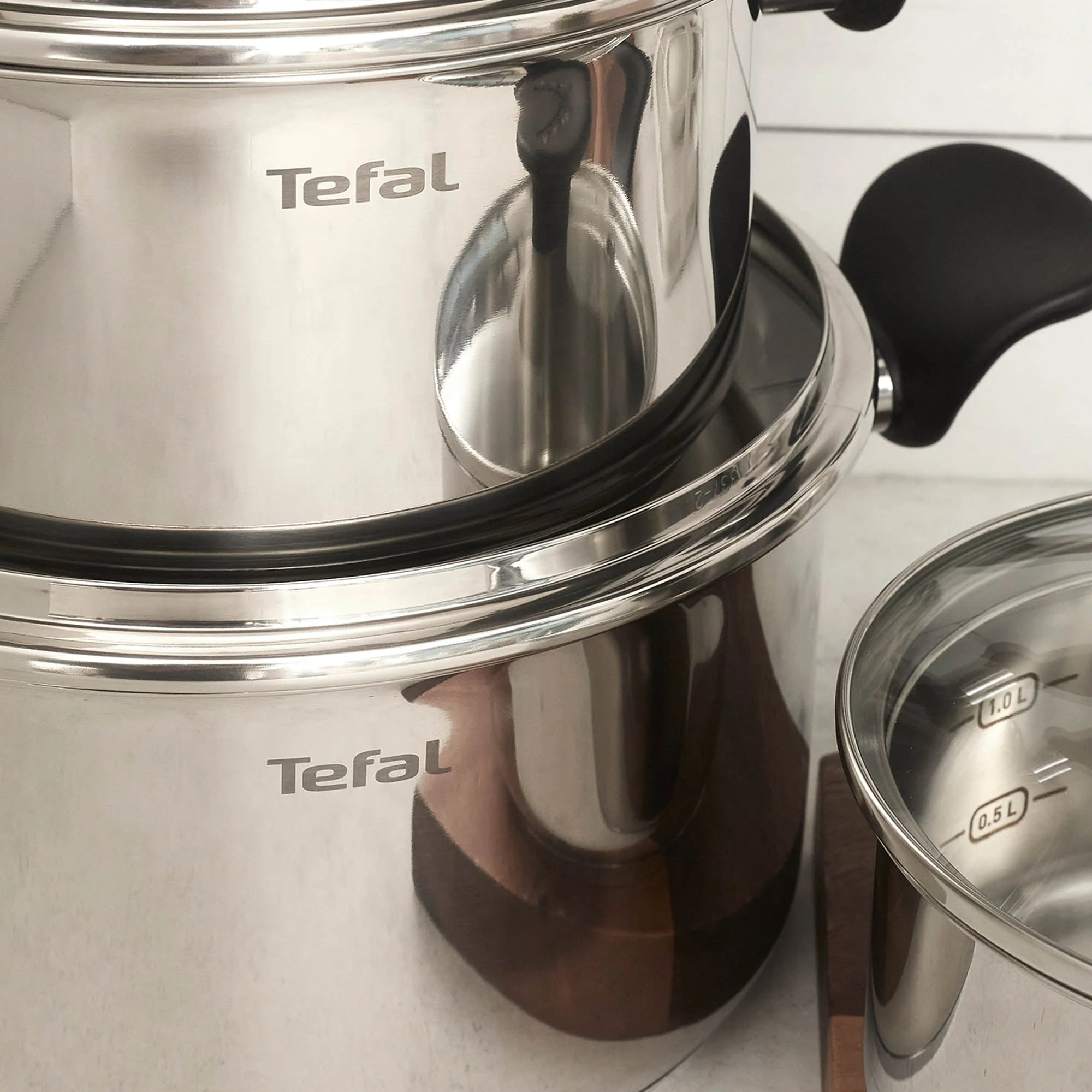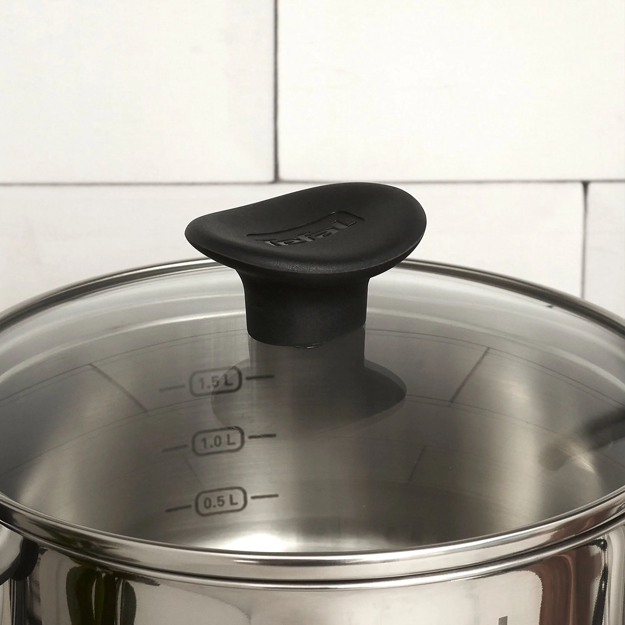 El juego de ollas para que cocinar sea más fácil. Con Tefal Primary, hemos pensado en todo para que usted no tenga que hacerlo. Este juego de ollas seguro y fácil de usar fue diseñado para hacer que cocinar sea más fácil todos los días. Enfréntate a nuevas recetas con total facilidad gracias a las marcas de medición en el interior de la olla, los convenientes bordes para verter para mantener tu cocina impecable y una tapa de vidrio transparente con liberación de vapor para retener la humedad óptima para comidas llenas de sabor. Acero inoxidable 18/10 de larga duración.