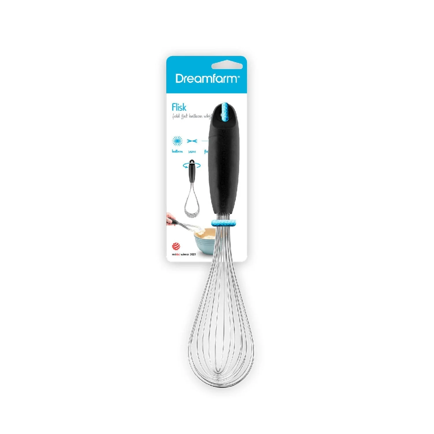 Flisk se pliega completamente para ahorrar espacio y ahorrar espacio y no se enredará con otras herramientas en su olla o cajón de utensilios. Para limpiar, simplemente gire Flisk en un batidor plano, raspe el exceso de ingredientes y colóquelo en el lavavajillas. Sin desmontaje, y hecho en muy poco tiempo.