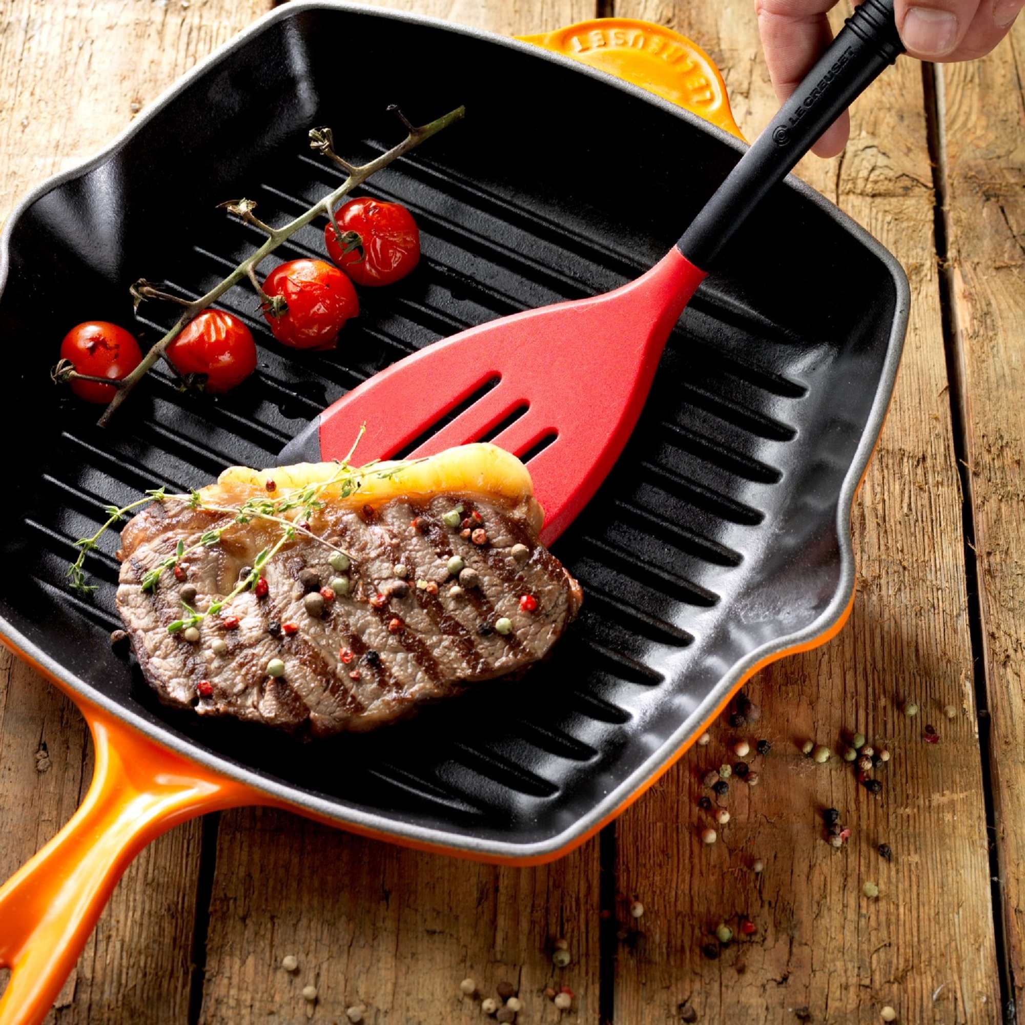 Esta cuchara con acabados de silicona es perfecta para una amplia gama de tareas en la cocina, como servir alimentos, partir piezas densas y remover en la cocotte. Fabricada con silicona de primera calidad y un mango de silicona y nylon reforzado, es resistente a temperaturas de hasta 250ºC (482ºF). Su diseño ergonómico permite un mejor control sobre las paredes de la sartén o cazuela. Además, es resistente a manchas y olores, y apta para lavavajillas. Los utensilios Revolution Bi combinan silicona flexible y nylon reforzado, asegurando durabilidad y eficiencia en cada uso. ¡Un utensilio imprescindible en tu cocina!