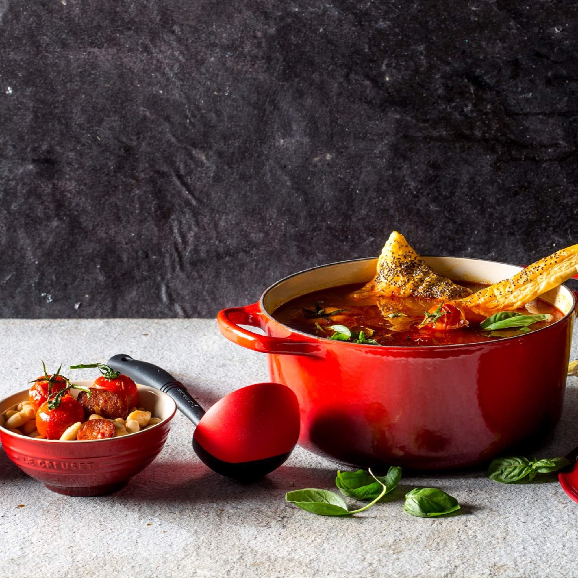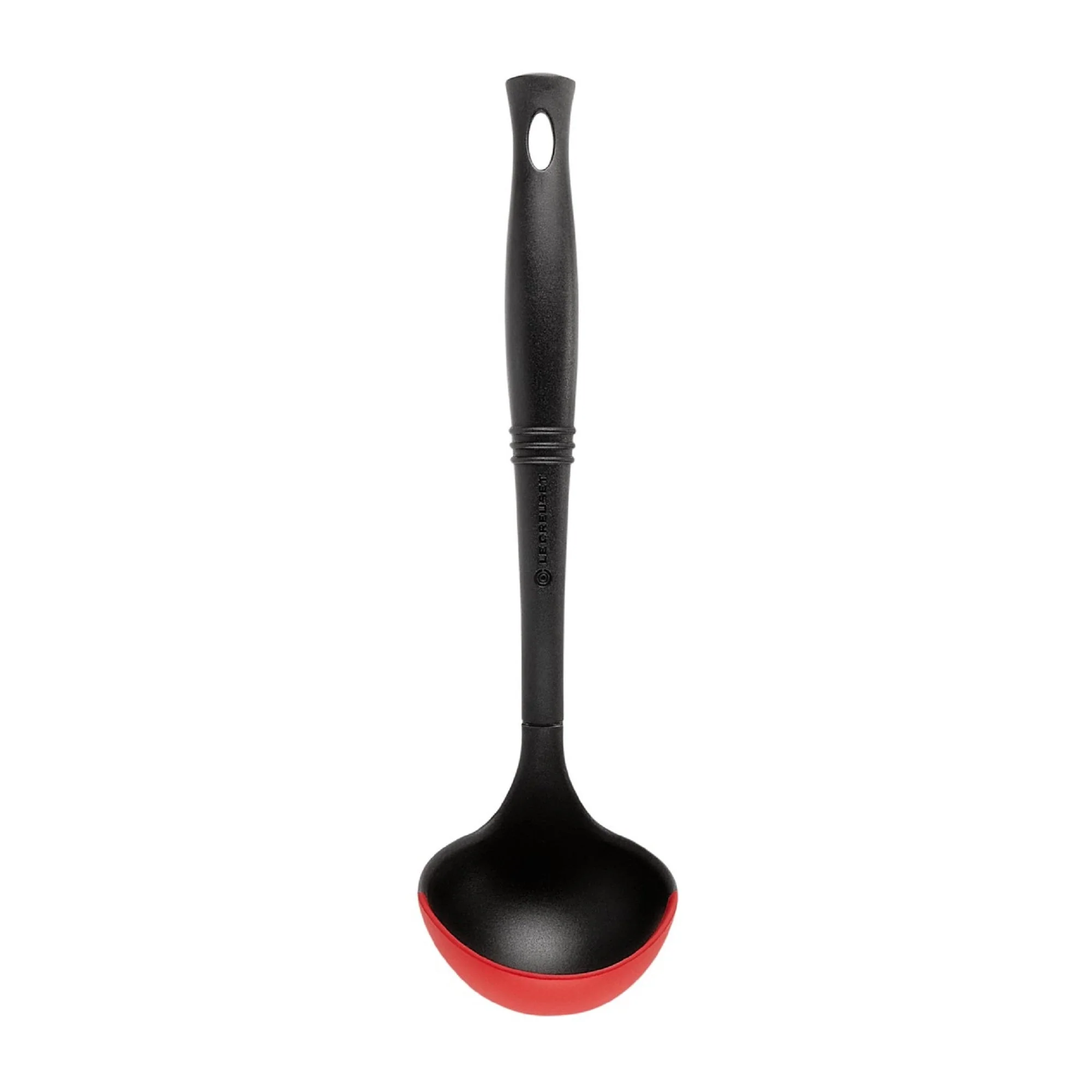 El cucharón de silicona y nylon reforzado bi-color de la gama Revolution Bi combina flexibilidad y precisión para recoger cada gota de tus preparaciones. Su borde ancho se adapta perfectamente a sartenes y cazuelas, mientras que su mango ergonómico, con arco curvado, ofrece un control superior. Fabricado con silicona de primera calidad y nylon reforzado con fibra de vidrio, resiste manchas, olores y temperaturas de hasta 250 ºC. Además, es higiénico y apto para lavavajillas. Duradero, práctico y cómodo, es el aliado ideal en tu cocina.