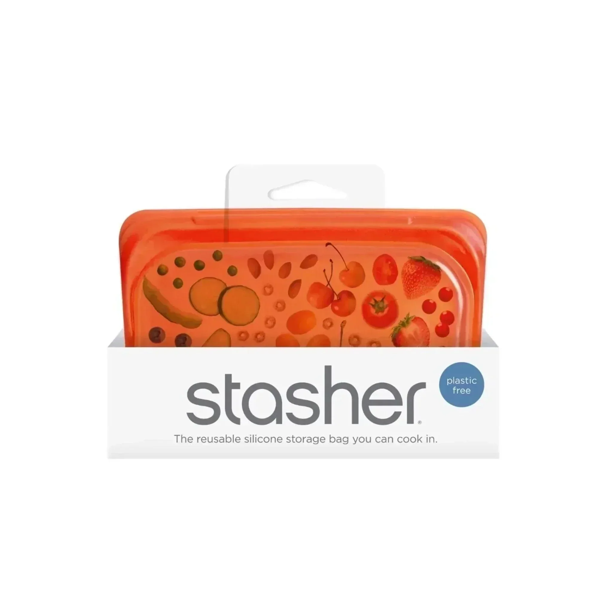 La bolsa ideal para llevar un snack donde vayas, ya sea a tu trabajo o a un paseo. El sello hermético Pinch-Loc, patentado, mantiene el contenido fresco y sin derrames. Versátil más allá de los alimentos. Variados usos: Cosmetiquero, guarda celular, guarda cables, guarda documentos, porta lápices, etc. Hecho de 100% silicona de grado alimenticio de platino puro, sin PVC, látex ni petróleo nocivos. Una alternativa sana y responsable al plástico. Una bolsa Stasher puede ser utilizada sin fin. Reduzca el uso del plástico. Prefiera Stasher. Cuidemos el planeta. Stasher dona el 1% de sus ventas a organizaciones sin fines de lucro que cuidan el planeta.