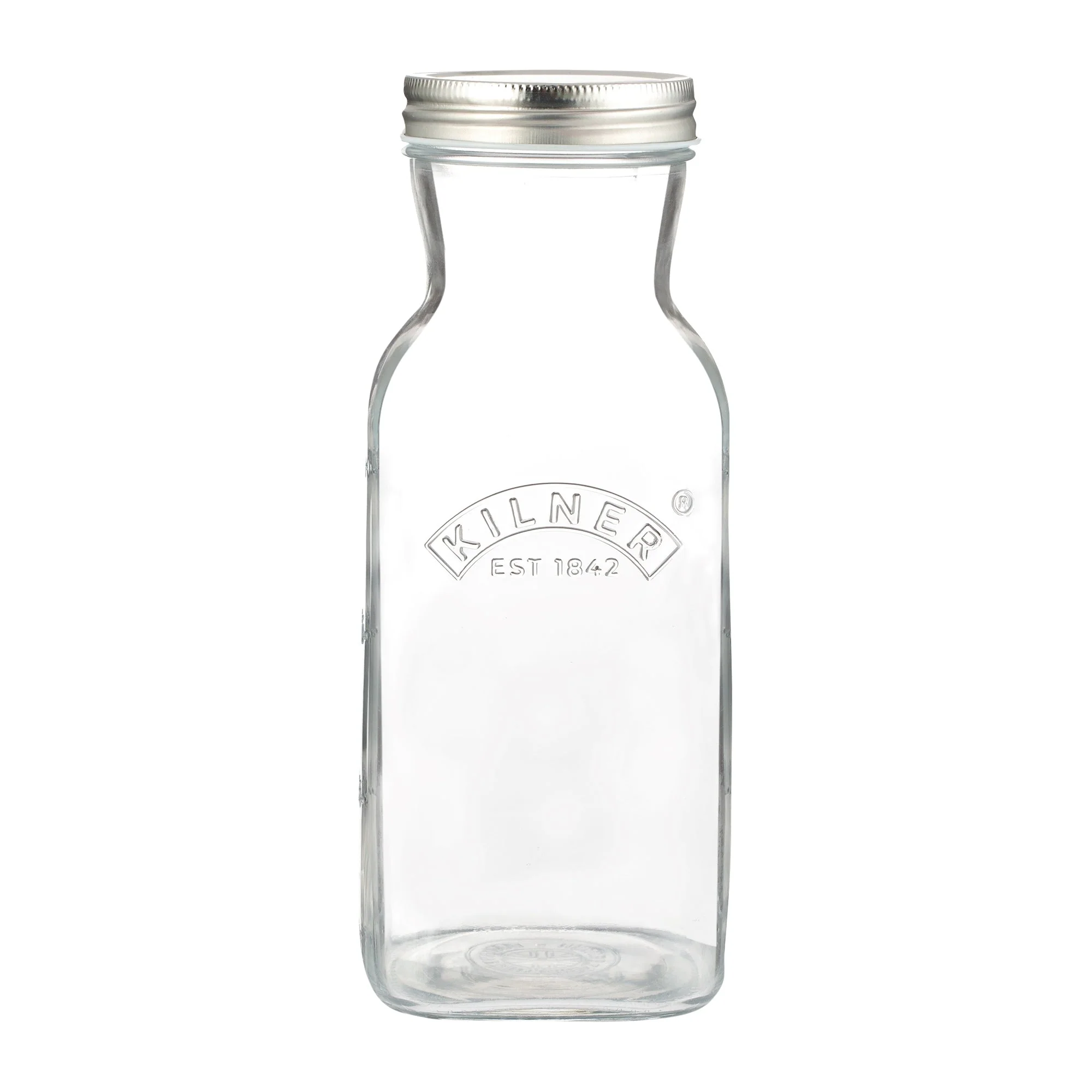La botella de jugo y salsa Kilner® de 1 litro es una solución versátil para almacenar y conservar todas sus salsas, yogures, jugos de frutas recién exprimidos y leches aromatizadas. Hecho para caber dentro de la puerta de un refrigerador. Además, fue diseñado con boca ancha para verter y rellenar fácilmente. Con una tapa de una sola pieza y una etiqueta de tapa redonda para agregar fechas de caducidad y notas, esta botella garantizará que su contenido se mantenga fresco por más tiempo. Adecuado para utilizar la tapa reemplazable de 2 piezas y el sistema de banda de rosca. La botella viene con indicadores de medición de capacidad. Cada botella está hecha de material de vidrio de cal sodada de alta calidad con una claridad impecable y un espesor de pared constante.