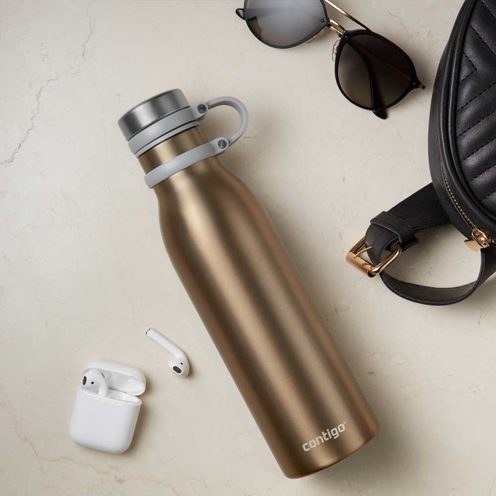 La botella de agua Matterhorn de Contigo ® es justo lo que necesitas, no solo para mantenerte hidratado, sino también para disfrutar de tus bebidas favoritas de la manera en que deben ser. Mantiene las bebidas frías hasta 24 horas y calientes hasta 10 horas gracias a su tecnología Thermalock™. No tendrás más accidentes ya que cuenta con una tapa a prueba de derrames. Te encantará que la boquilla de esta botella de agua de acero inoxidable se gire para permitir una fácil acceso y mejor limpieza. Utiliza el asa de transporte suave al tacto para mantener la botella a tu lado todo el día. Incluso se adapta a la mayoría de los portavasos en tu automóvil o en el gimnasio.