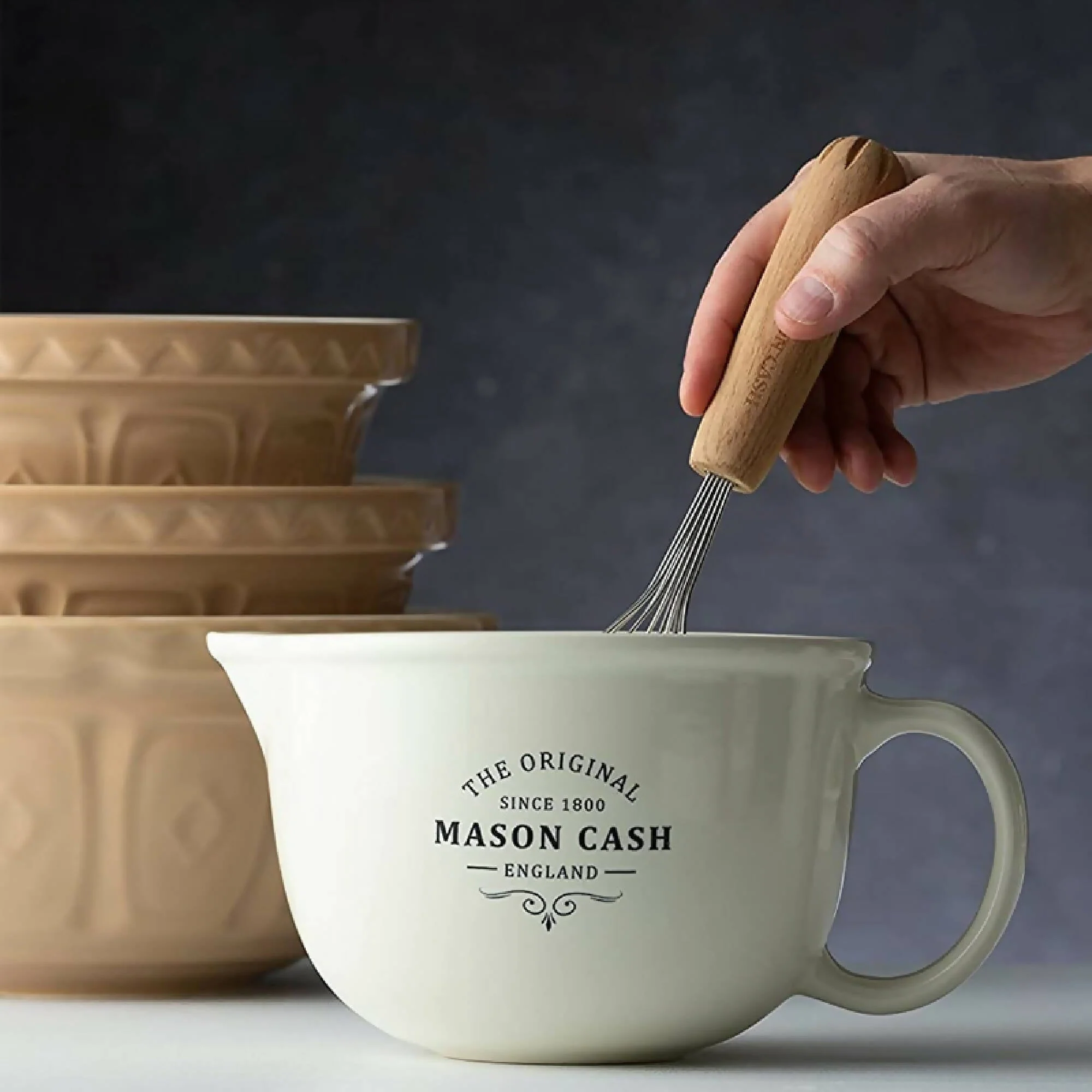 Una herramienta perfecta para hornear, el recipiente Bowl Mezclador Heritage 2 Lts Mason Cash se puede usar para batir, mezclar y tiene un útil borde para verter. Perfecto para hacer batidos y mezclas para pasteles. Hecho de cerámica de gres, es apto para lavavajillas, microondas y freezer. El recipiente para masa tiene una capacidad de 2 litros y mide 12,9 cms de Alto x 18,5 cms de Diámetro. Mason Cash se estableció en el corazón de la industria cerámica inglesa en 1800 y se ha vuelto mundialmente conocida por sus innovadores y clásicos utensilios de cocina en la actualidad. Inspirada en las galerías de principios del siglo XX, la colección Mason Cash Heritage Collection tiene todas las características de convertirse en un clásico moderno.