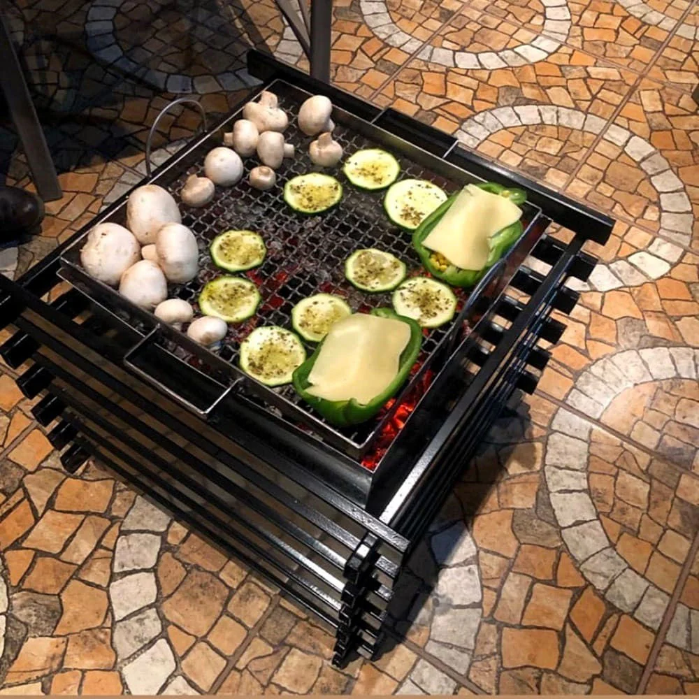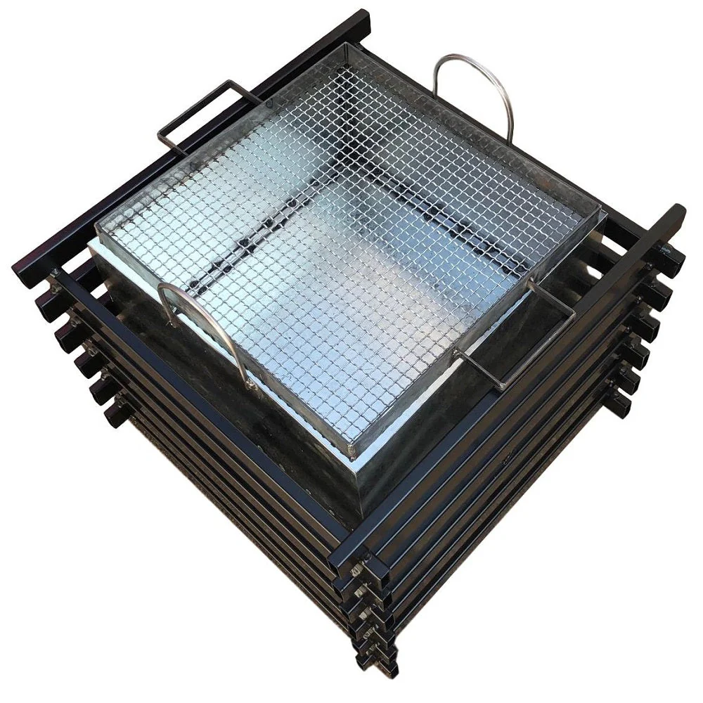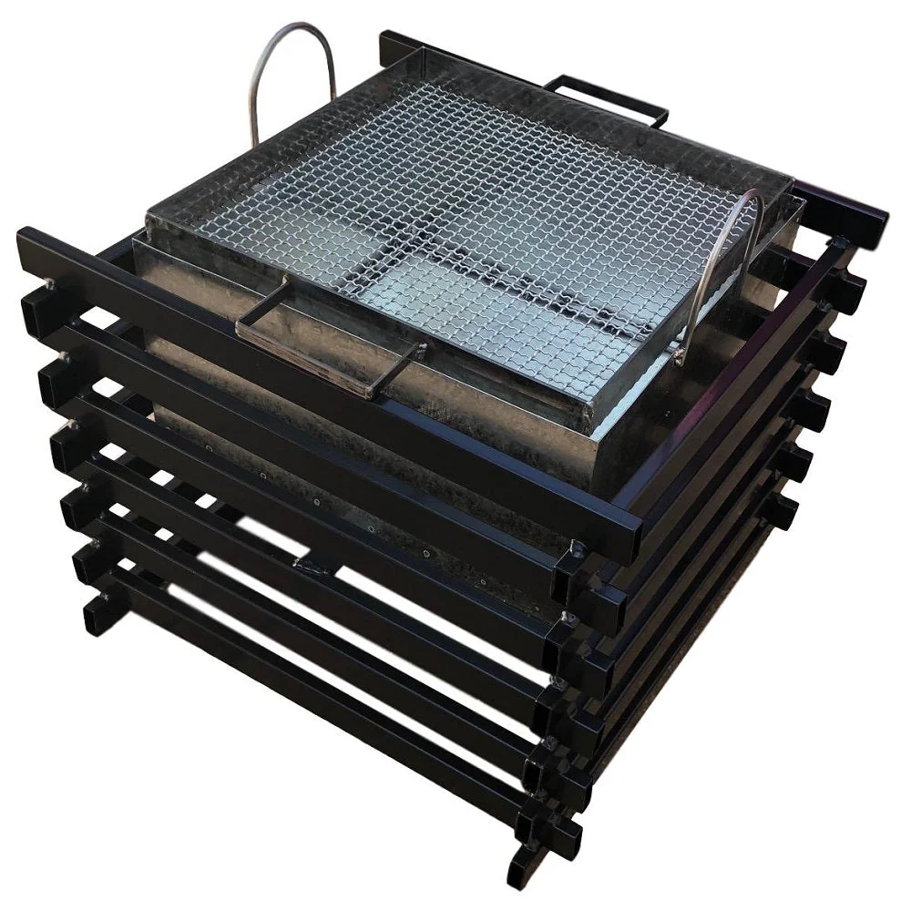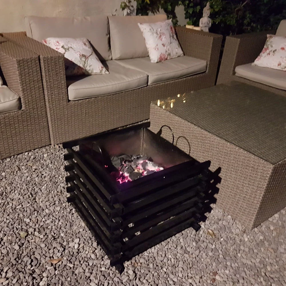 El Fogón Brasero Kas Chile, elaborado en fierro de alta resistencia, es ideal para compartir con amigos o familia y disfrutar al aire libre todo el año alrededor de la fogata. Úsalo en la terraza, el jardín, el parque, la playa, el camping al aire libre, etc! Se compone de una estructura exterior de fierro cuadrada negra y un contenedor interior de fierro desmontable para limpieza. Además incluye una increíble parrilla desmontable en la que podrás asar tus alimentos favoritos! El contenedor interior se encuentra elevado del piso para evitar quemaduras a la superficie de contacto. Las medidas del fogón son 54 x 54 x 43 cm (altura). Se puede utilizar con carbón o leña.