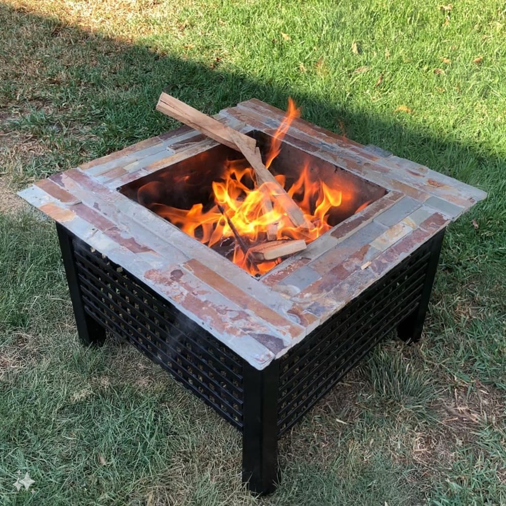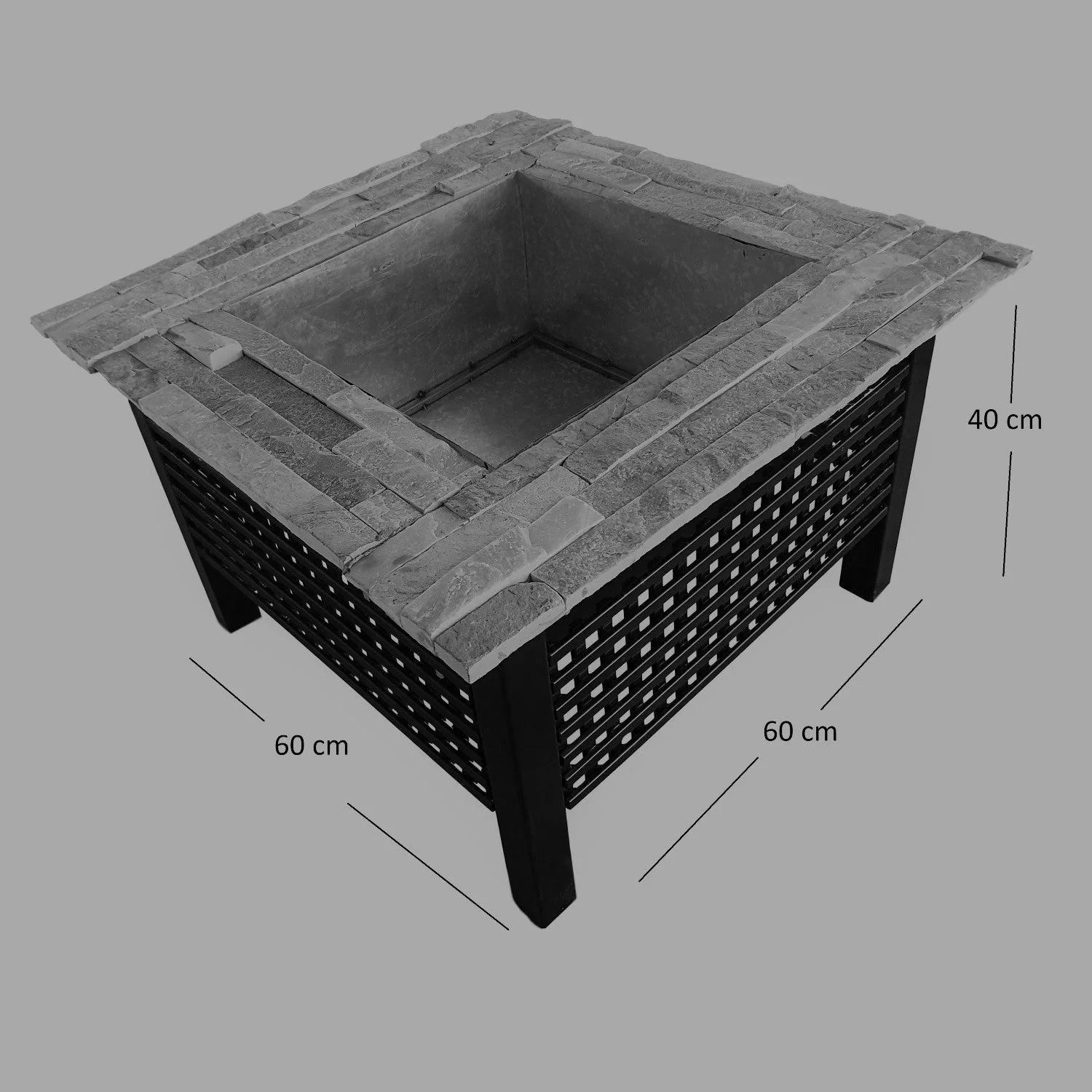 El Brasero Fogón de Piedra Natural Kas Chile generará un ambiente cálido y muy agradable para reunirte con todos tus amigos o familiares. Disfruta durante todo el año en la terraza, el jardín, la playa, el camping al aire libre, etc. El Fogón Brasero se compone de una estructura enrejada en fierro muy resistente, un contenedor para carbón o leña y una cubierta enchapada en piedra natural. Permite calefaccionar la terraza y jardín, compartir alrededor de un rico asado y además decorar los espacios con su increíble diseño. El contenedor se encuentra elevado del piso para evitar quemaduras a la superficie de contacto. Este producto mide 60 x 60 x 40 cm (altura).