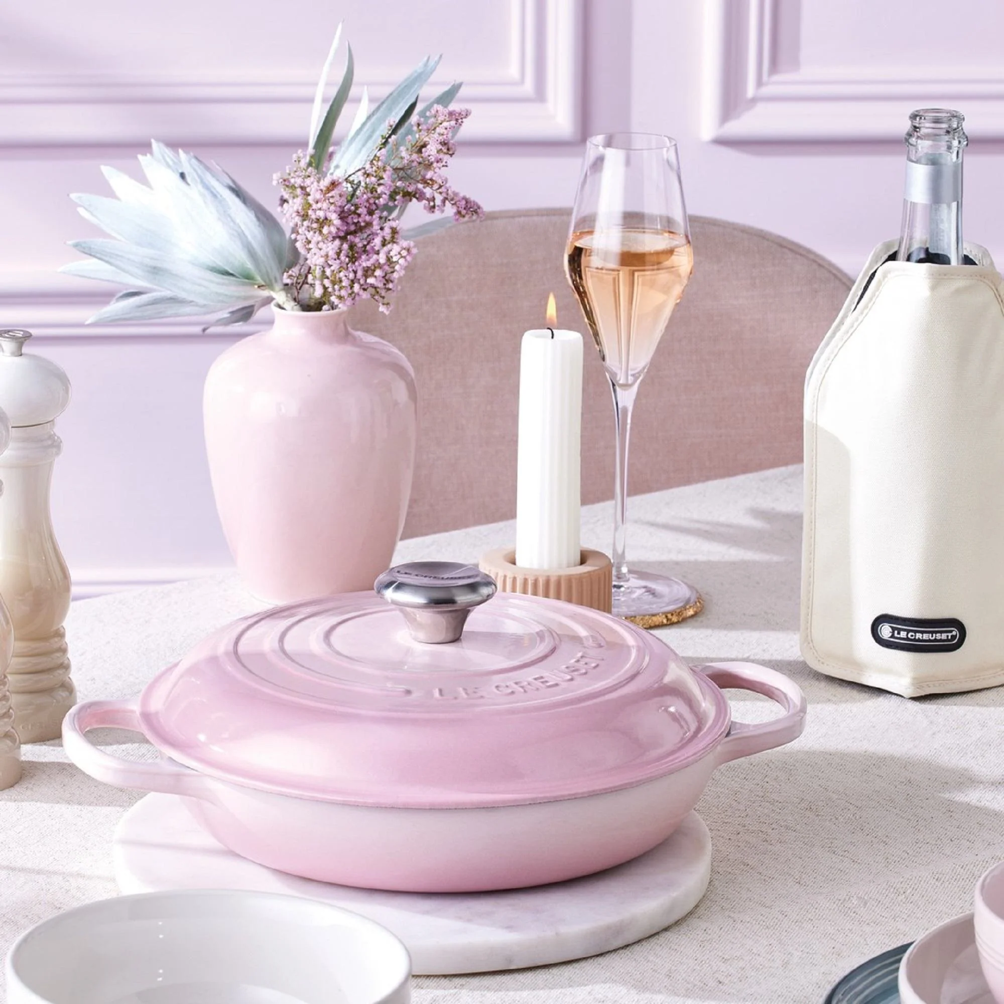 Cacerola Baja 26cm Hierro Fundido Esmaltado Shell Pink Le Creuset