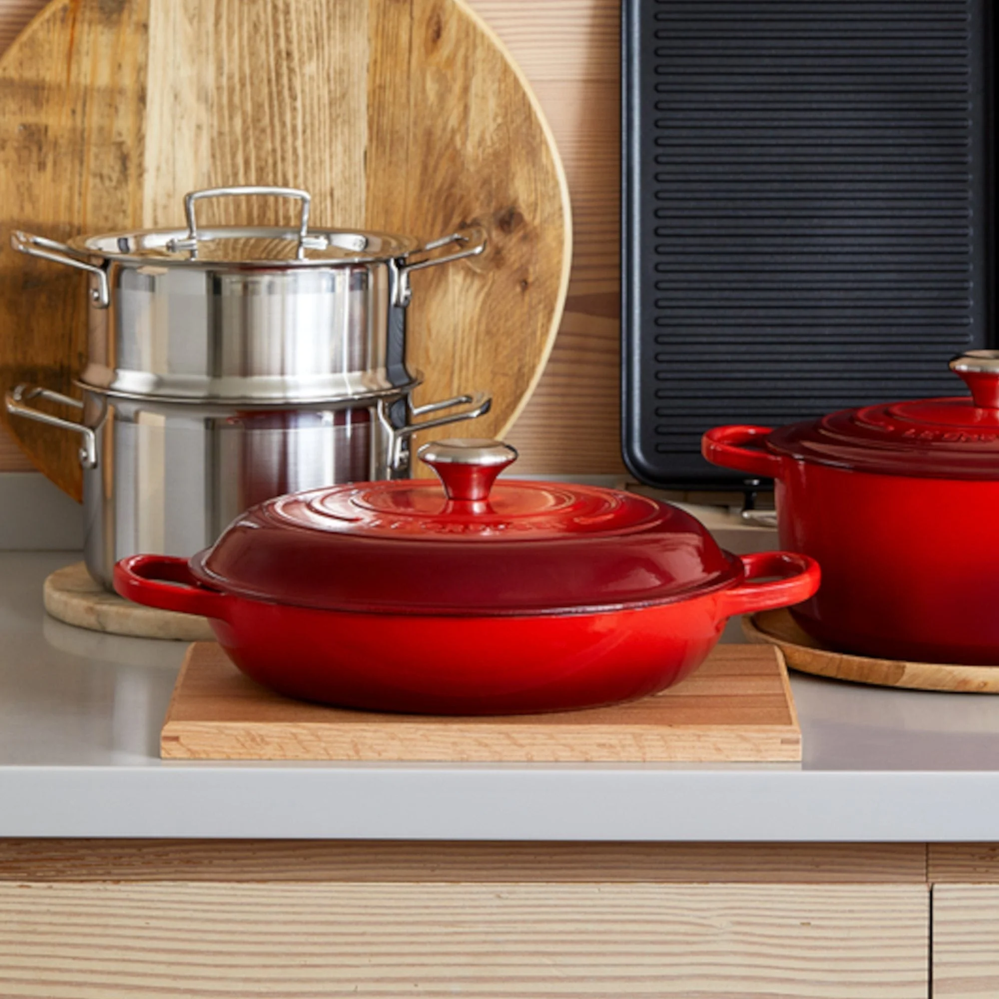 Disfruta del arte de cocinar con la Cacerola Baja Cereza de 26 cm de Le Creuset. Hecha en Francia en hierro fundido, garantiza cocción uniforme y sabores intensos. Su diseño bajo es ideal para dorar, saltear y asar. Cuenta con asas grandes, pomo resistente al calor y esmalte interior fácil de limpiar. Compatible con horno, inducción, fogones y grill. Disponible en colores vibrantes. Cocina a fuego medio o bajo para conservar su calidad. ¡Lleva tu cocina al siguiente nivel con Le Creuset!