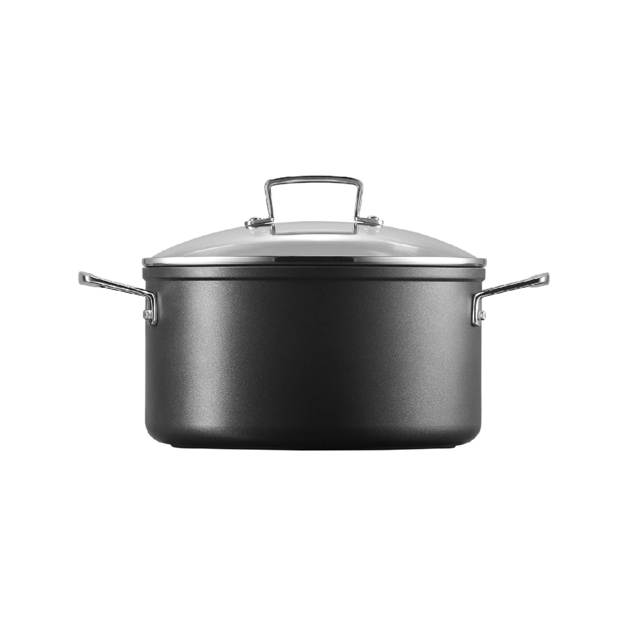Práctica cacerola de 24cm, el tamaño ideal para toda la familia. Prepara deliciosas recetas sin que nada se pegue y lo mejor de todo, utilizando muy poca materia grasa. Elaborada en aluminio anodizado, súper antiadherente no tóxico. Además posee una tapa de cristal templado, perfecta para hervir y conservar la humedad de los alimentos. Apta para todas las fuentes de calor. Garantía de por vida.