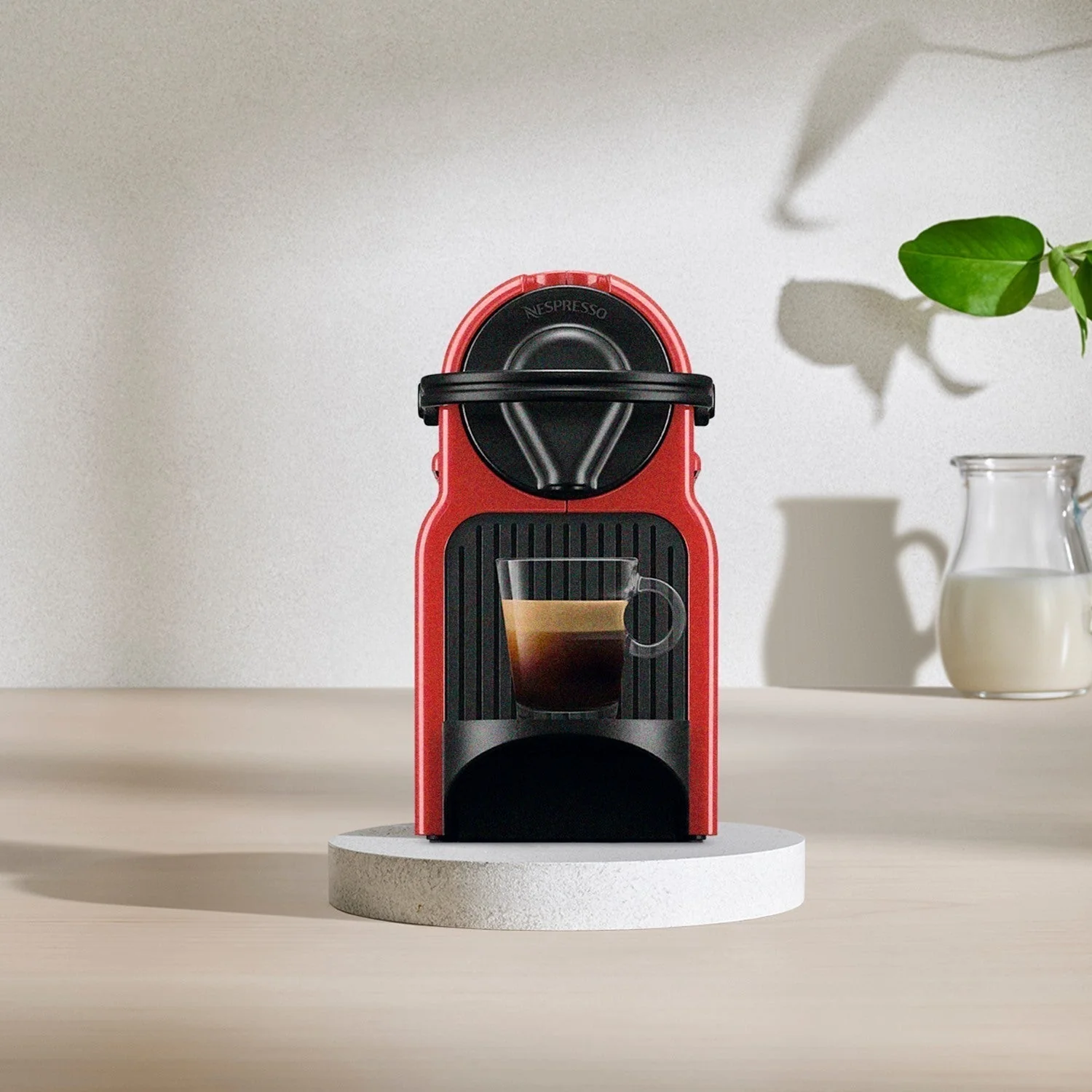 Esta máquina de café posee 19 bar de presión para obtener un excepcional café italiano. Sus dos botones programables permiten preparar fácilmente dos medidas de taza: un Espresso (40 ml) o un Lungo (110 ml). Posee una función de apagado automático después de 9 minutos sin uso para un mayor ahorro de energía y un calentamiento rápido de 25 segundos. Disfruta de un café excepcional en casa junto a tu Nespresso Inissia.