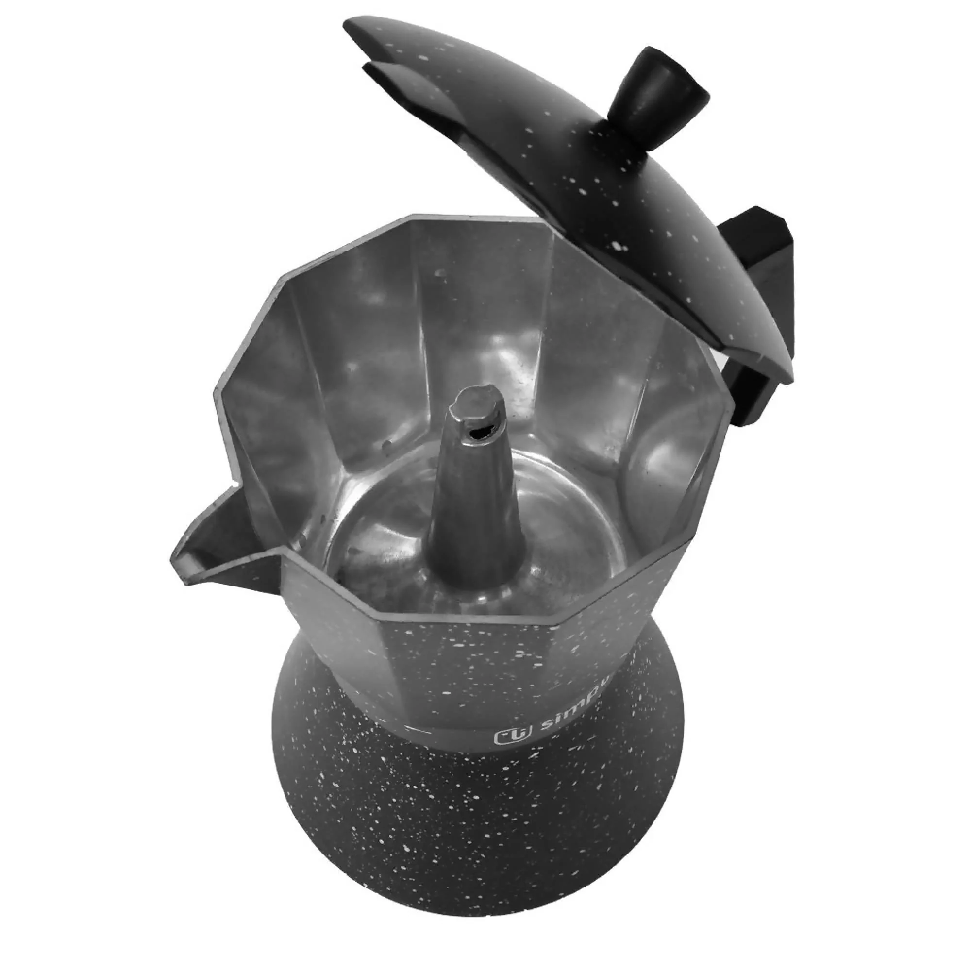 Nuestra Cafetera Italiana Simplit es perfecta para los amantes del café. En ella podrás lograr un café más intenso que lo que te entregan otras cafeteras. Su diseño negro de granito le dará el toque perfecto que le faltaba a tu cocina.