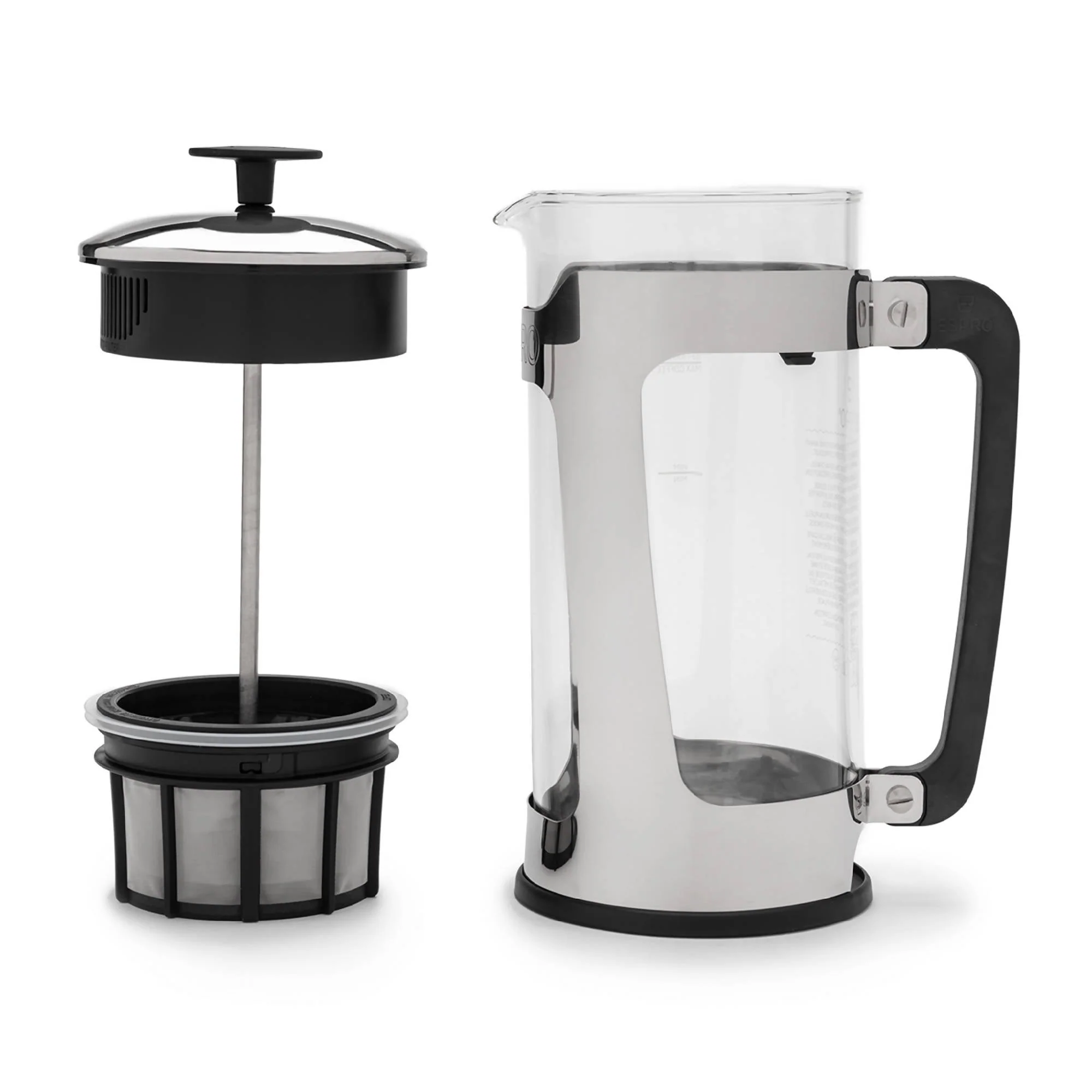 Espro le ofrece un café de excelente sabor a través de un diseño cuidadoso. Esta cafetera de prensa francesa mejora los principios básicos del popular método de preparación con dos innovaciones: una cámara aislada que detiene rápidamente la extracción y microfiltros dobles. El resultado es una taza de café aromatizado sin sedimentos ni sedimentos. Hecha de vidrio de borosilicato de fabricación alemana en un marco de acero inoxidable pulido, la jarra es duradera, retiene el calor y deslumbra en el mostrador o en la mesa del desayuno.