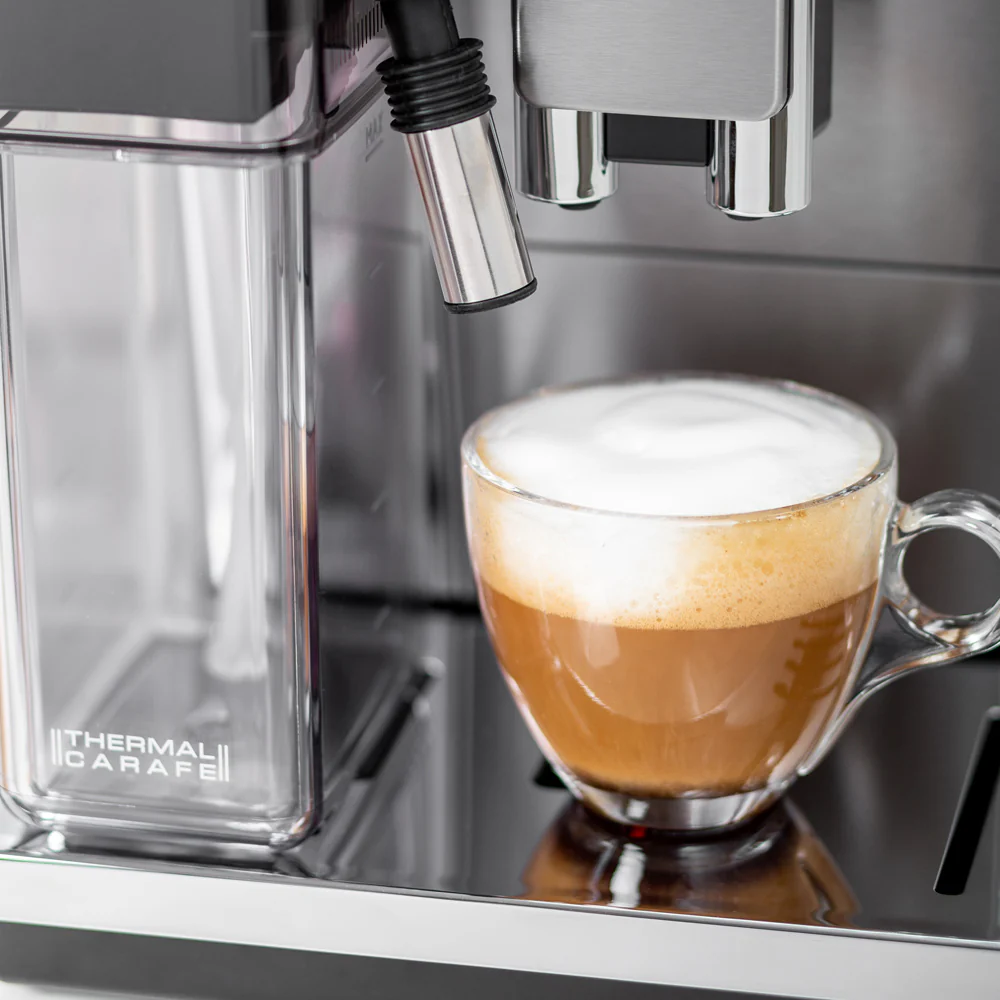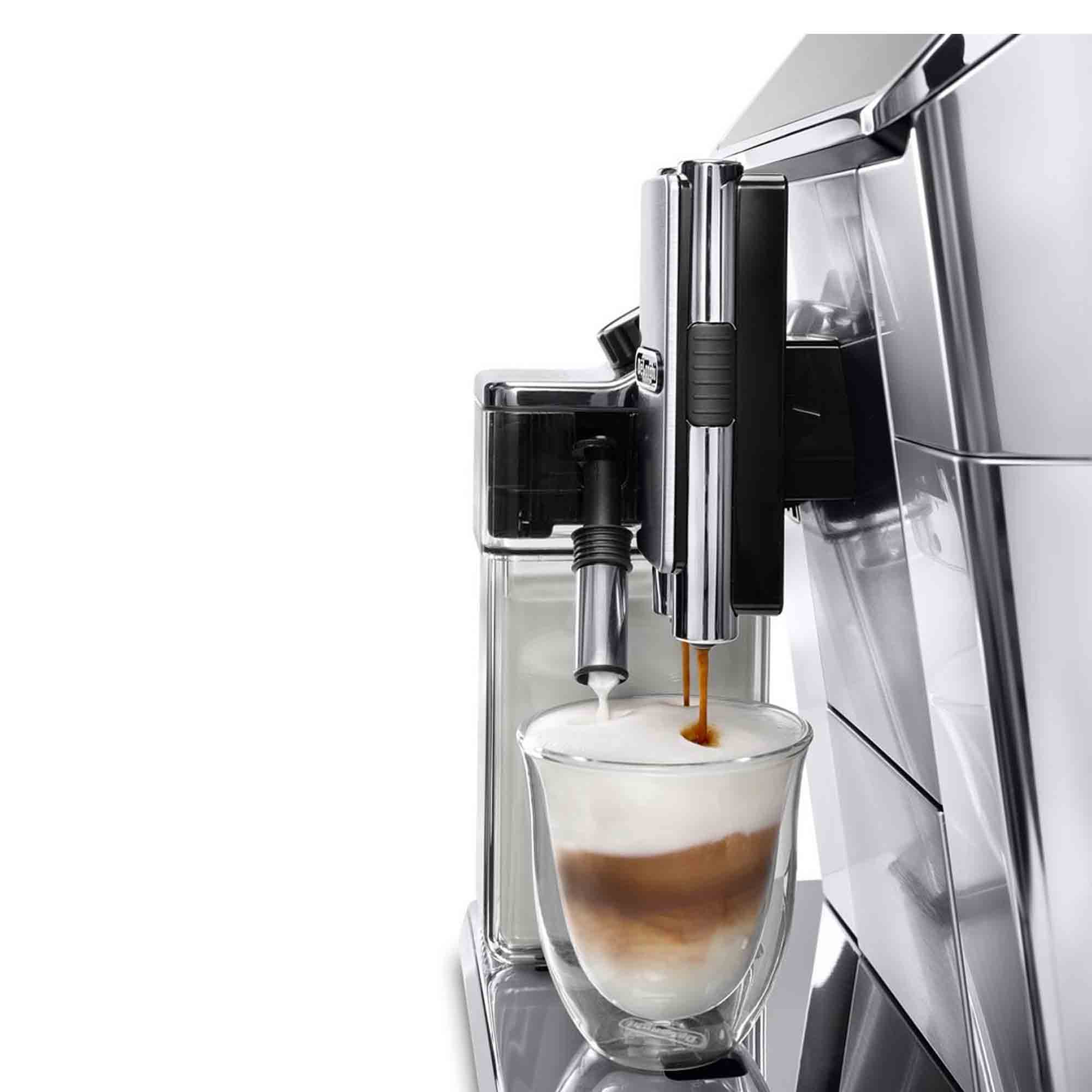 La Cafetera DeLonghi Superautomatica PrimaDonna ECAM650.75 cuenta con una tecnología única que te permitirá conectividad mediante su App, entregándote todo lo necesario para crear cafés nivel experto. En su pantalla gráfica y táctil podrás elegir si programar recetas preprogramadas o personalizarlas a tu propio gusto, regulando el nivel de molienda, la cantidad de café o leche. Podrás crear hasta 6 perfiles para administrar tus propias recetas para que puedas modificarlas las veces que desees. Su función calienta tazas será perfecta para mantener por más tiempo la temperatura ideal de tu café o chocolate caliente. Esta cafetera te permitirá elegir entre diferentes funciones, tales como chocolate caliente, exclusivo sistema de espuma de leche “LatteCrema” o variedad de recetas espresso, café, long, latte, macchiato y leche. Con esta cafetera podrás darte un gusto diferente cada día e innovar en tus bedidas dándoles en toque personal con un sabor y aroma único.