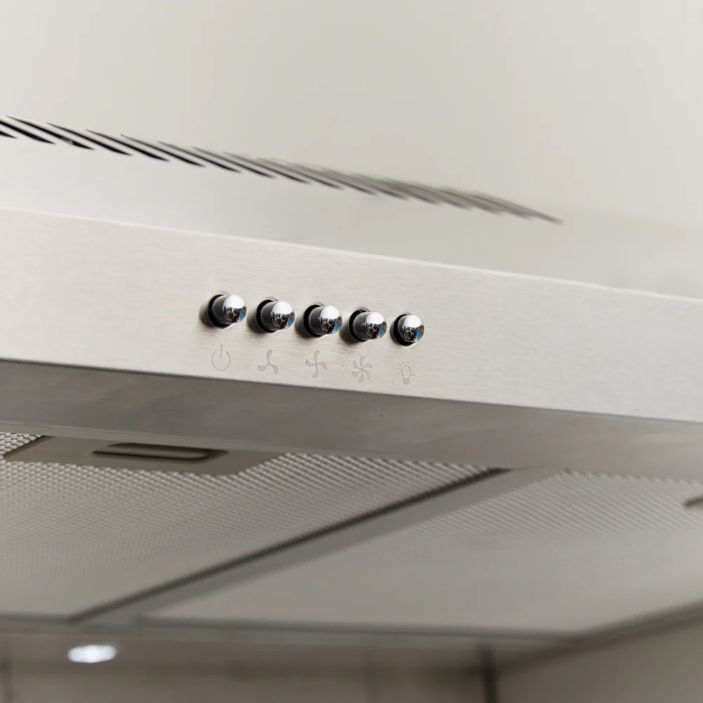 Diseñada para montaje bajo mueble, esta campana es compatible tanto con recirculación como con salida exterior, y cuenta con 3 velocidades para ajustar el flujo de aire según tus necesidades. Ideal para una cocina limpia y moderna.