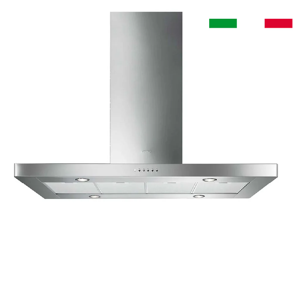 La Campana Isla 120 cm KI120XE Smeg, de una reconocida marca italiana, combina estilo y funcionalidad avanzada en acero inoxidable. Con una capacidad de aspiración de hasta 820 m³/h, ofrece una opción de velocidad intensiva para una rápida eliminación de olores y humo.