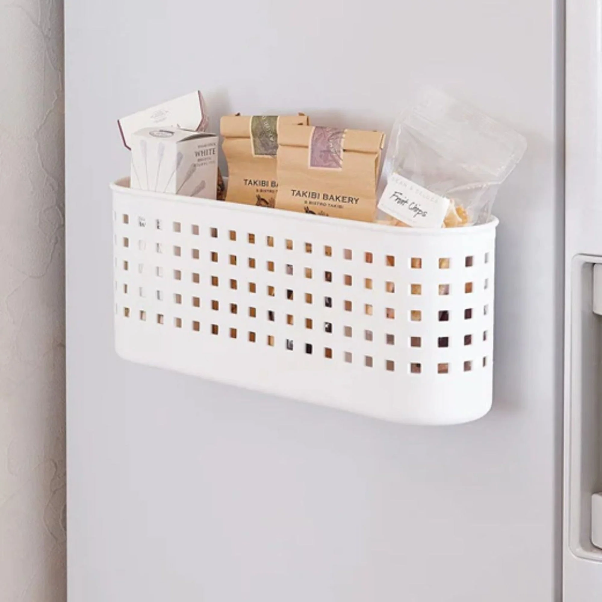 Cesta magnética ancha baja. Cesta ancha versátil con imán para guardar artículo al alcance de tu mano. Esta canasta tiene 3 secciones para almacenar variedad de artículos. El imán está cubierto con una película para proteger superficie de instalación. Soporta harta 2,5 kg.