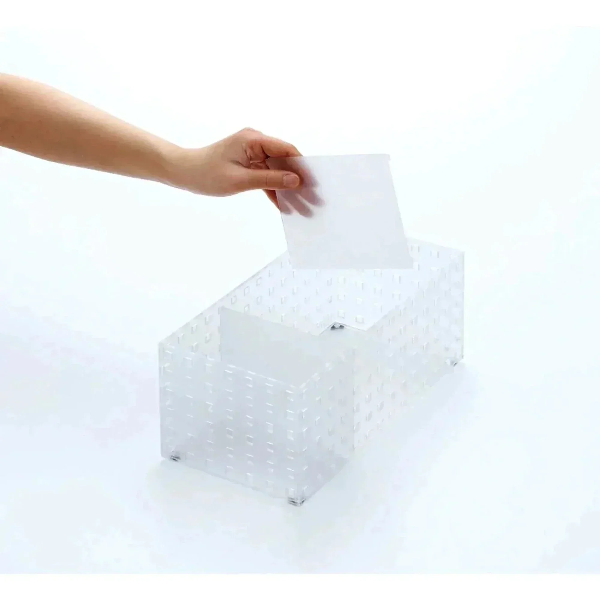 Su perfecto diseño de línea recta no crea espacio desperdiciado para maximizar el almacenamiento y espacio. Hecho de poliestireno duradero y fácil de limpiar. Apilar de forma segura uno sobre otro. Los pies de goma evitan que se resbalen o rayen las superficies de almacenamiento. Mezcla y combina para crear tu propia unidad de almacenamiento única.