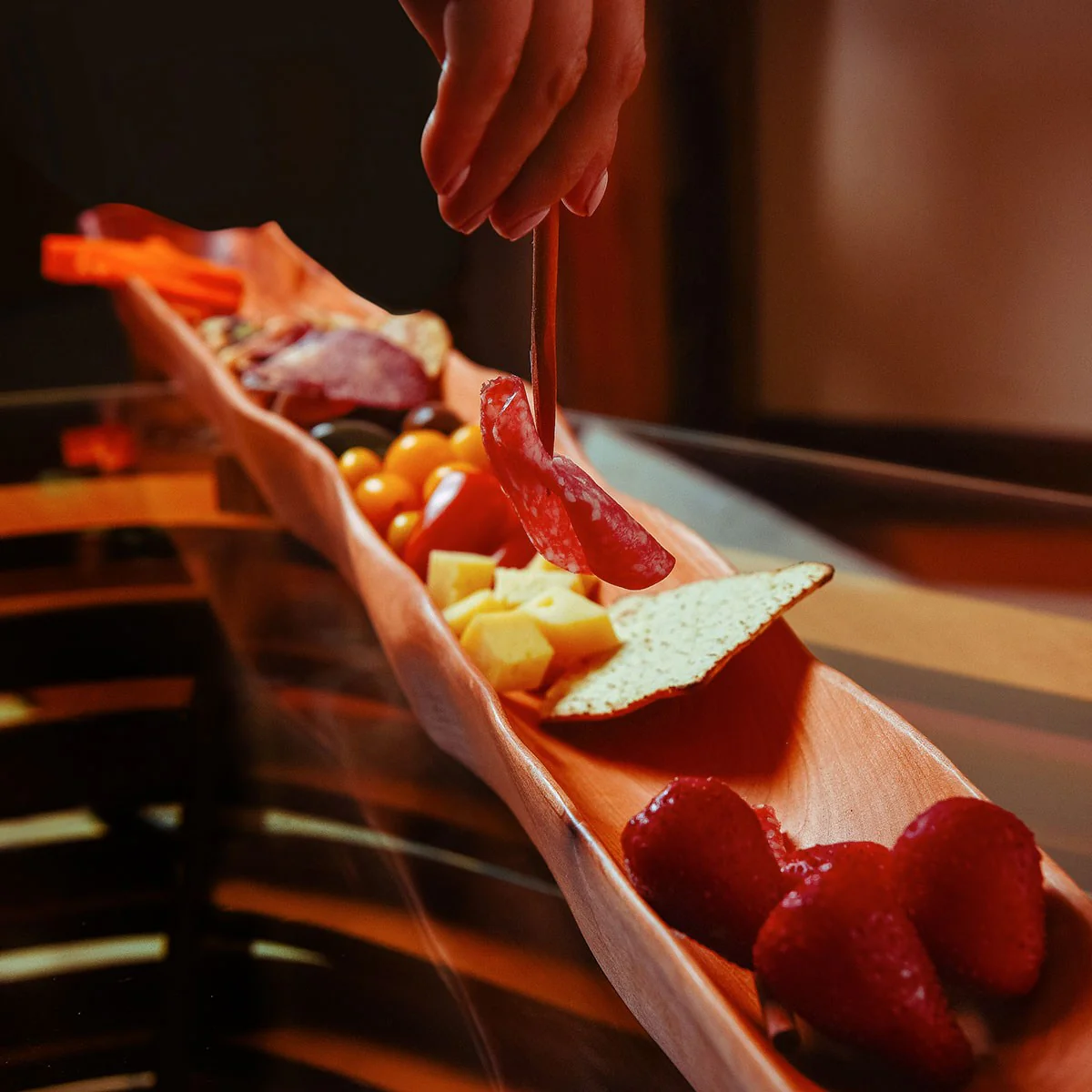 Sumérgete en la elegancia y la funcionalidad con la Canoa de Madera para Aperitivos de Milenaria Alerce. Esta pieza única, elaborada en Raulí, es perfecta para resaltar tus aperitivos y ensaladas en cualquier ocasión. Con sus dimensiones de 90×12 cm, es ideal para colocar en el centro de la mesa o en un arrimo, agregando un toque distintivo a tu decoración. Su diseño exclusivo en madera nativa le confiere un encanto especial que no pasa desapercibido.