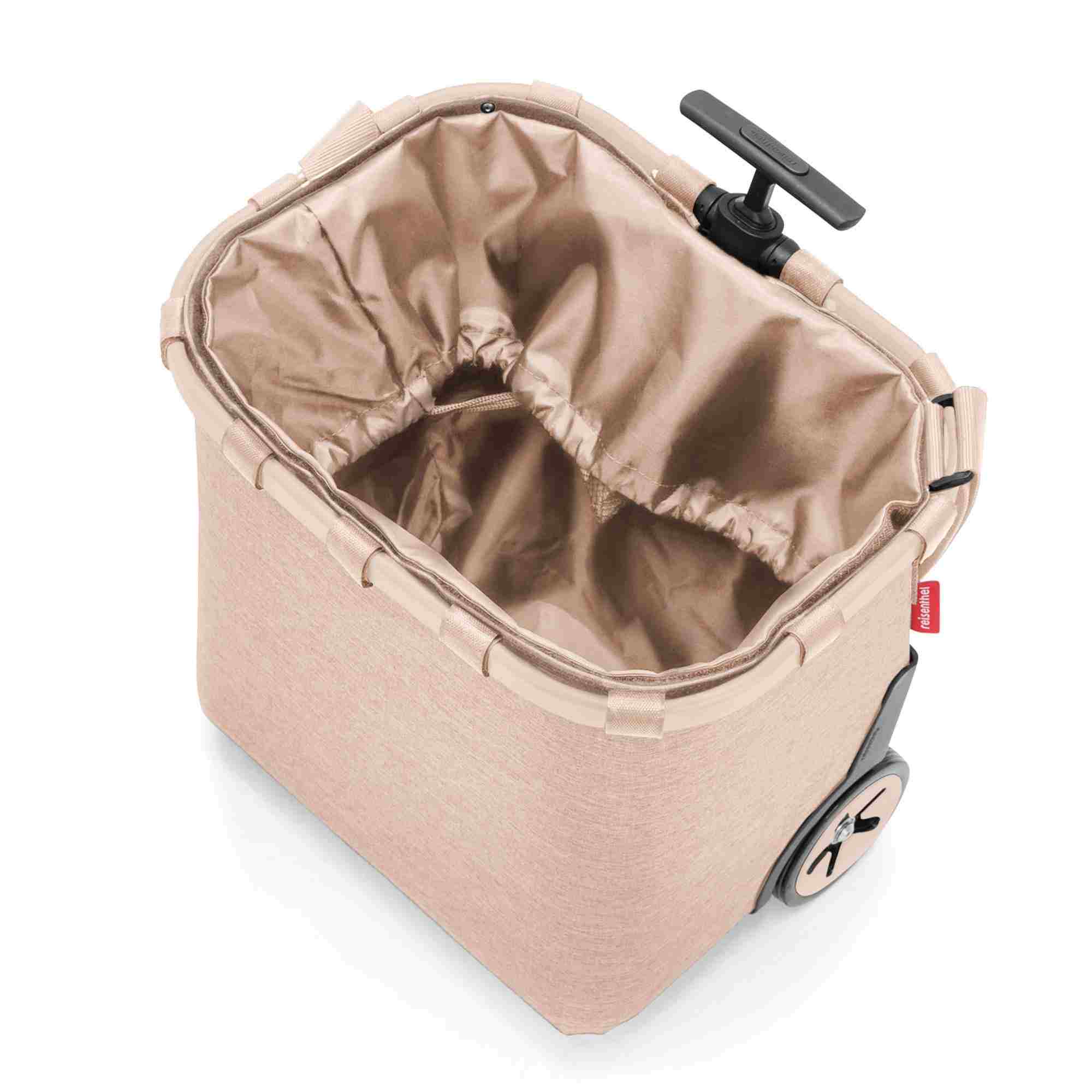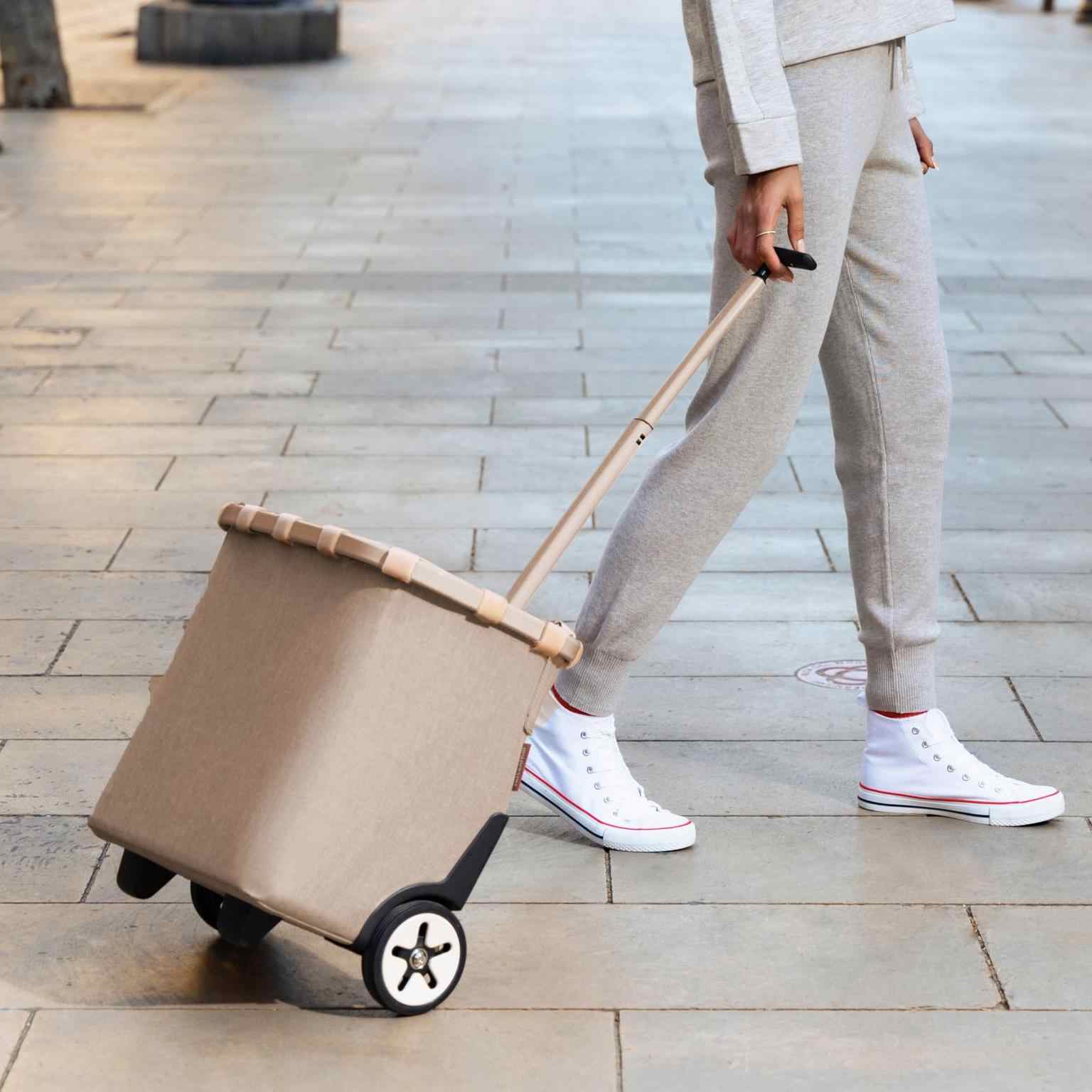 Carro de compra elegante, genio estable y versátil fabricado por Reisenthel. El carrycruiser lleva cómodamente los alimentos a casa, cabe en casi todos los baúles de los automóviles y también se puede llevar fácilmente sobre el hombro. Entretejiendo 3 veces más hilos finos multicolores, se crea un aspecto particularmente noble y único y un material muy robusto. Posee un marco de aluminio estable, forro interior extraíble y lavable con cierre de cordón, bolsillo interior de malla extraíble, correa de hombro ajustable con hombrera. Una Pértiga telescópica extensible de 2 vías, ruedas grandes y de fácil funcionamiento. Además pies de plástico y soportes de clip para sujetar al carro de la compra.