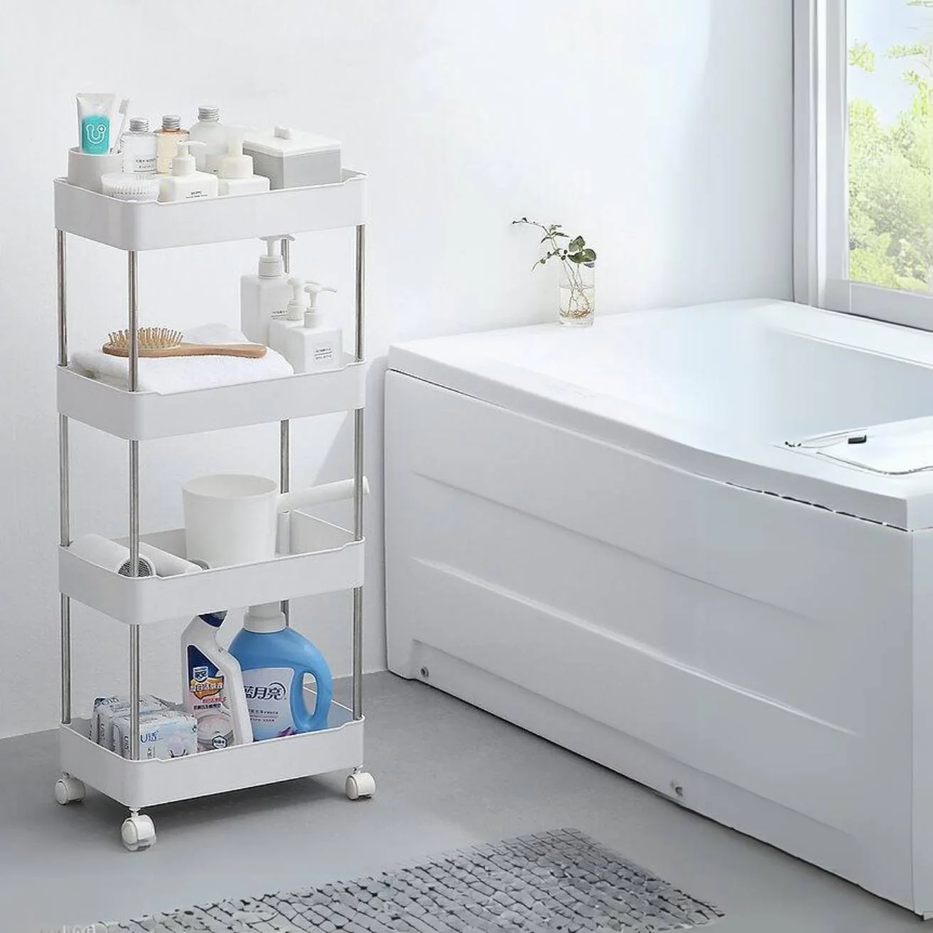 El Carro Organizador con Ruedas de 4 Repisas de Santú Home & Deco es tu aliado perfecto para mantener tu hogar organizado con estilo. Este versátil carro de 4 niveles ofrece una solución práctica para combatir el desorden en cualquier espacio de tu casa. Con amplio espacio de almacenamiento, te permite clasificar y guardar objetos y accesorios de manera ordenada y accesible. Sus ruedas facilitan su desplazamiento, brindándote flexibilidad para ubicarlo donde lo necesites. Simplifica la organización de tu hogar con este carro funcional y estético de Santú Home & Deco. ¡Descubre la comodidad y la elegancia que ofrece y transforma tu espacio ahora!