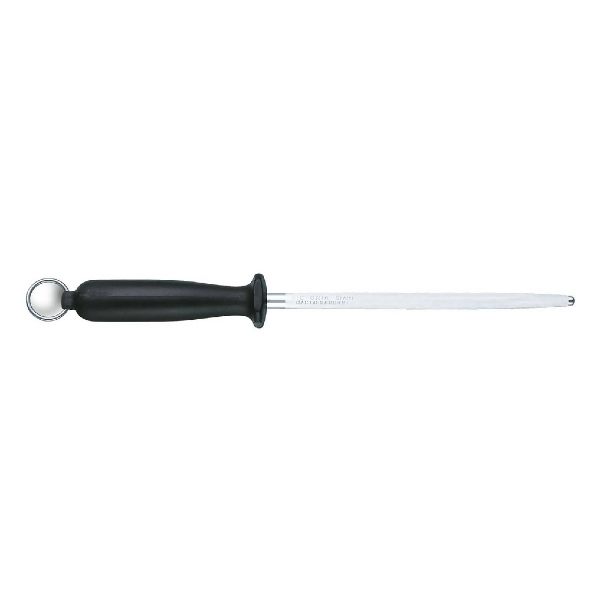 Para disfrutar del placer de cocinar, es imprescindible disponer de cuchillos bien afilados , y para conservar siempre un filo perfecto , es necesario utilizar regularmente la chaira. Es perfecta para asentar el filo del cuchillo y darles una larga vida útil, además su manipulación sencilla y efectiva. Fabricada con acero cromo con cable en plástico y anilla para colgar.