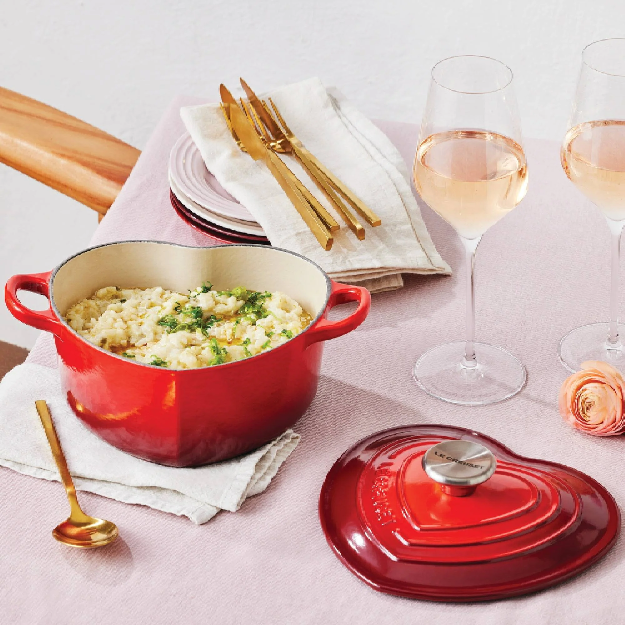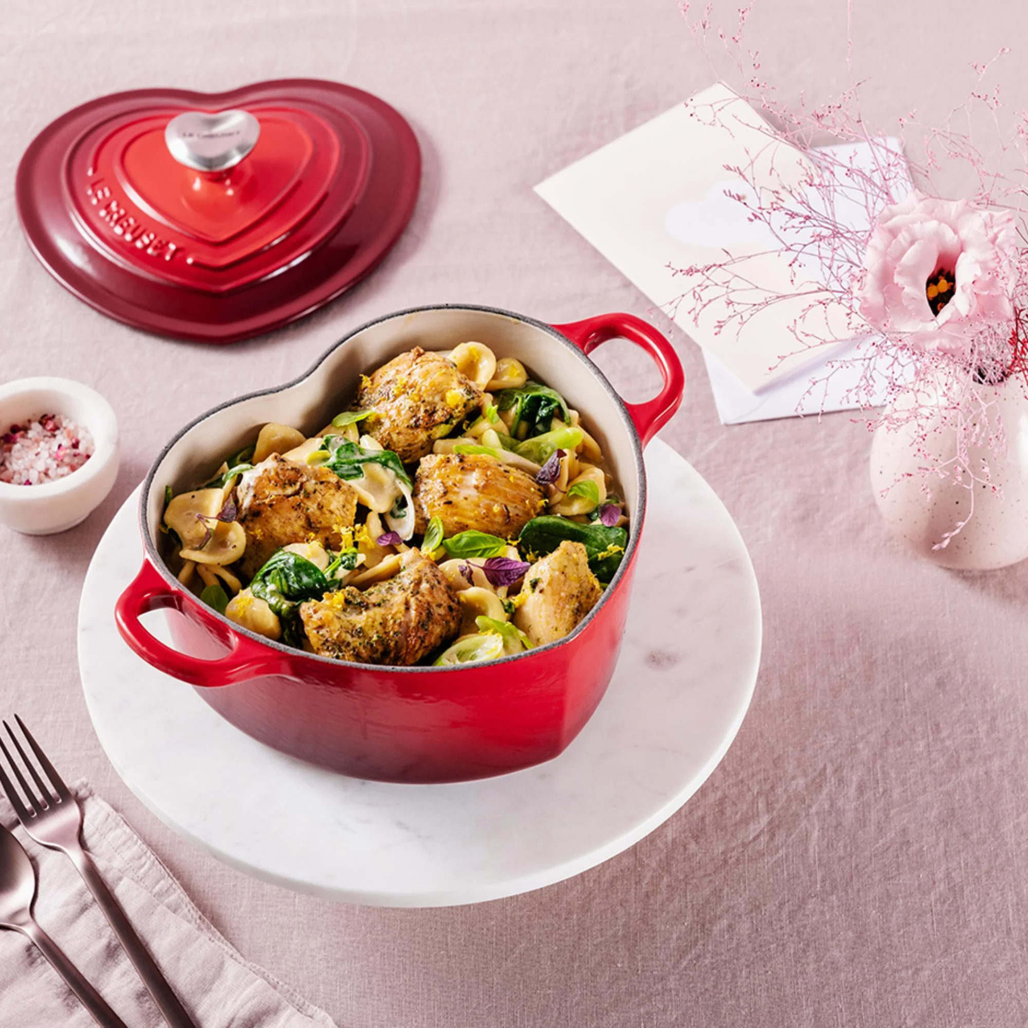 Encuentra el regalo perfecto en la Cocotte Corazón Cereza de 20 cm de Le Creuset, una pieza emblemática ideal para celebraciones especiales como el Día de la Madre, San Valentín, cumpleaños o bodas. Su encantadora forma de corazón la hace única en la colección de hierro fundido de Le Creuset, manteniendo las mismas prestaciones de calidad y rendimiento. Diseñada para cocinar estofados, asados, sopas y hornear bizcochos, esta cocotte distribuye el calor de manera uniforme y conserva la temperatura de los alimentos perfectamente.