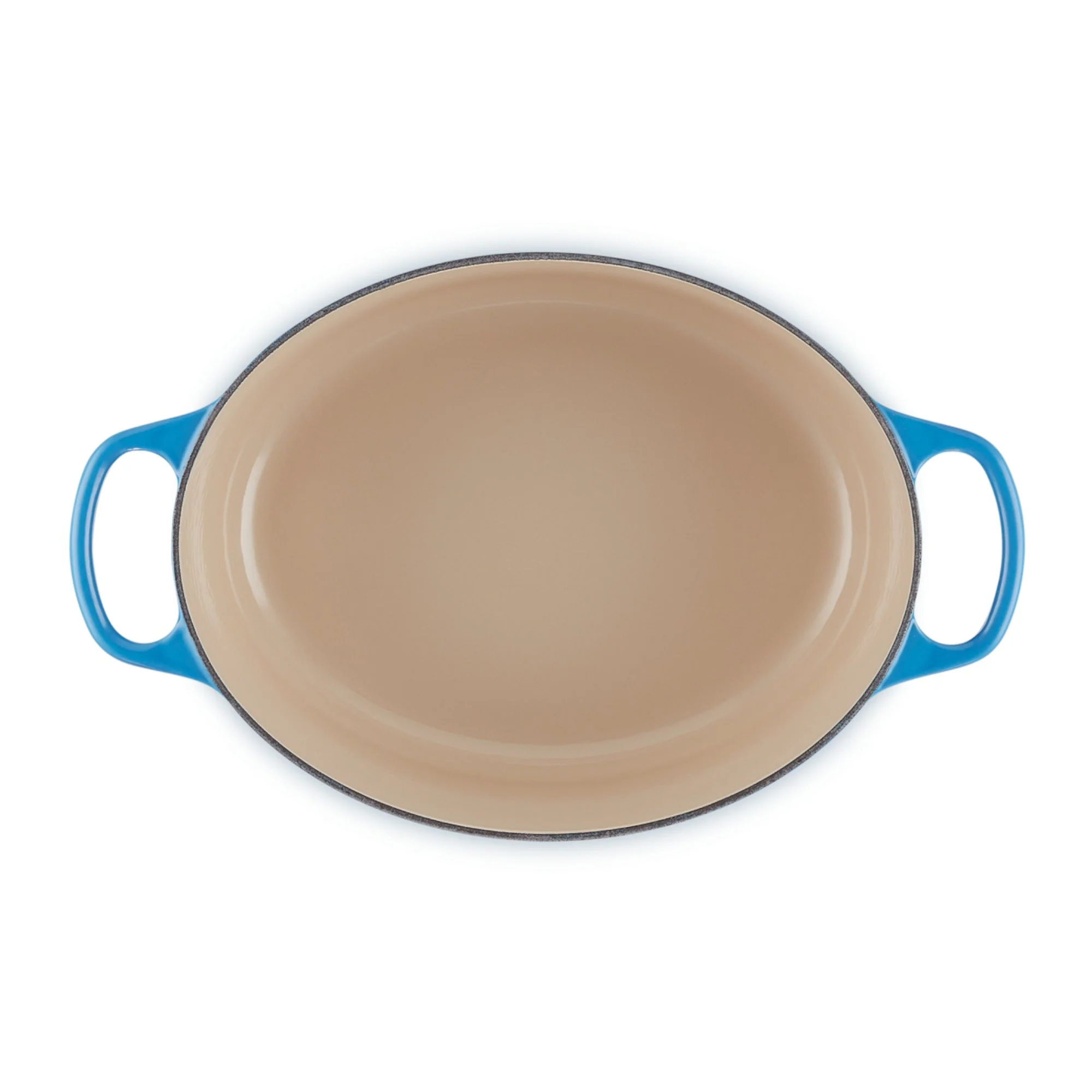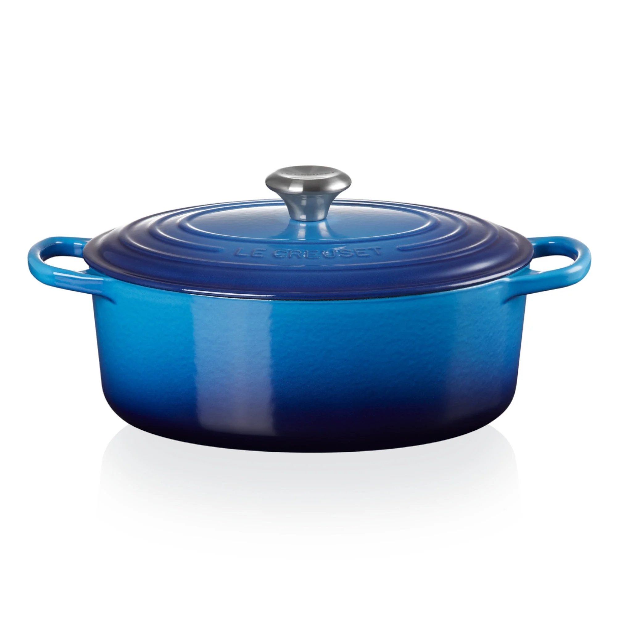 Mejora tu experiencia culinaria con la Cocotte Oval Azure de 31 cm de Le Creuset. Ideal para una gran variedad de recetas, su diseño ergonómico y resistente incluye un pomo que soporta hasta 260 ºC y asas grandes para un manejo seguro. El interior esmaltado facilita la limpieza, mientras que el hierro fundido asegura una cocción y dorado uniformes, manteniendo tus comidas calientes por más tiempo. Su tapa encaja perfectamente para retener la humedad y potenciar el sabor. Compatible con horno, fogones, inducción y grill. Disponible en varios colores y tamaños. ¡Lleva tu cocina al siguiente nivel con Le Creuset!