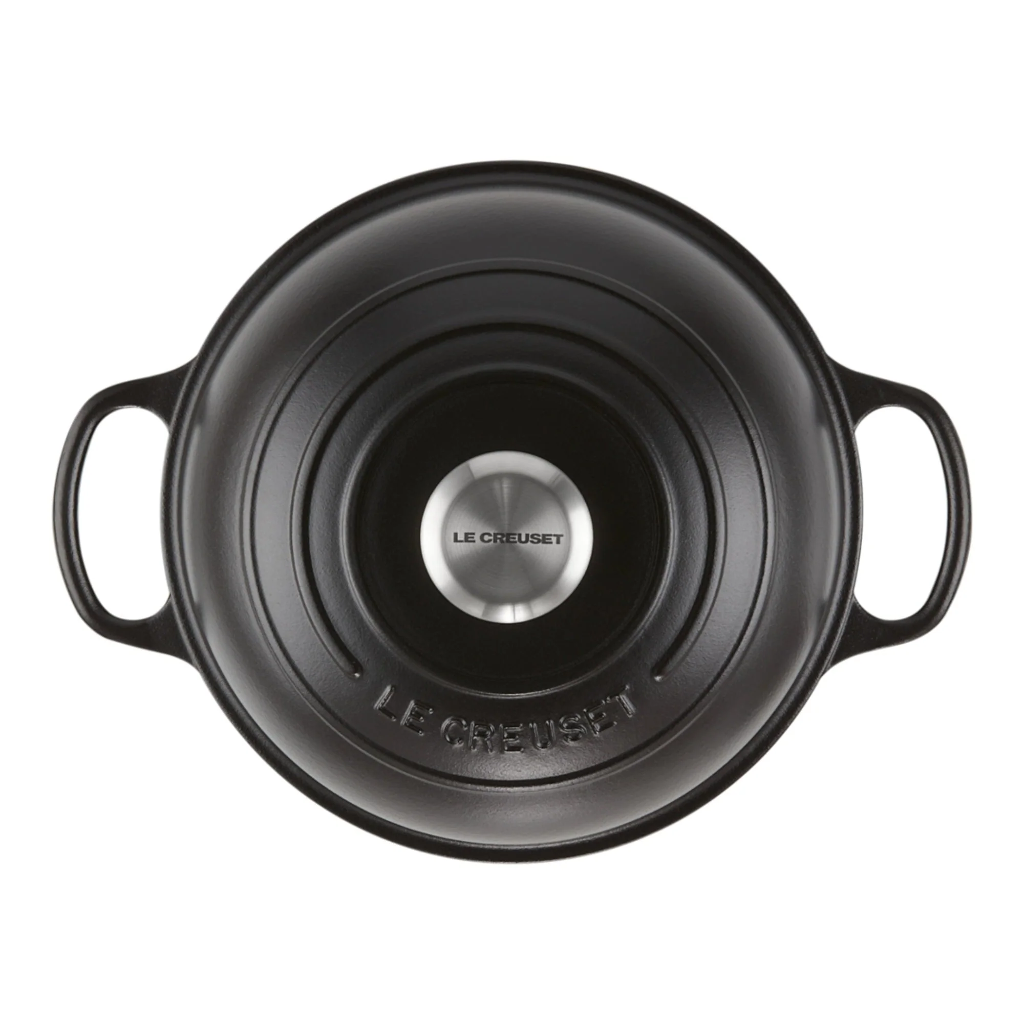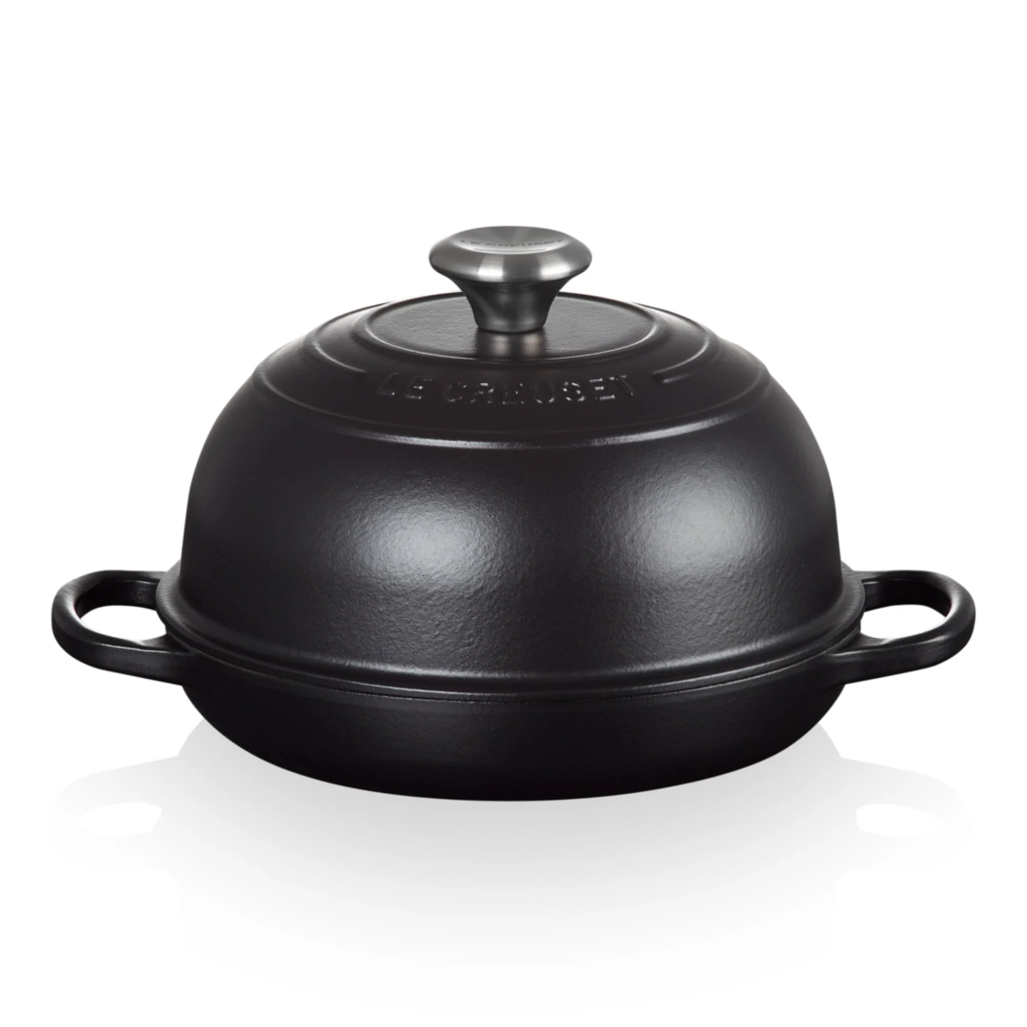 Descubre el arte de hornear pan perfecto en casa con la Cocotte Para Pan de 24 cm de Le Creuset. Diseñada con el emblemático hierro fundido de la marca, esta cocotte asegura una distribución del calor excepcional, mientras su tapa abovedada retiene el vapor necesario para un levado óptimo y un sabor completo. La base de bajo perfil promueve un tostado uniforme, creando una corteza dorada y crujiente adornada con los tres anillos característicos de Le Creuset. El esmalte negro mate interior, junto con un pomo y asas ergonómicas, facilita el manejo incluso con guantes de horno, garantizando una experiencia culinaria sin igual. Ideal para los entusiastas del pan casero que buscan resultados profesionales, esta Cocotte es esencial en tu cocina. No esperes más para llevar tus habilidades de horneado al siguiente nivel. Adquiere tu Cocotte para Pan de Le Creuset hoy y comienza a disfrutar de hogazas deliciosas y artesanales sin salir de casa.
