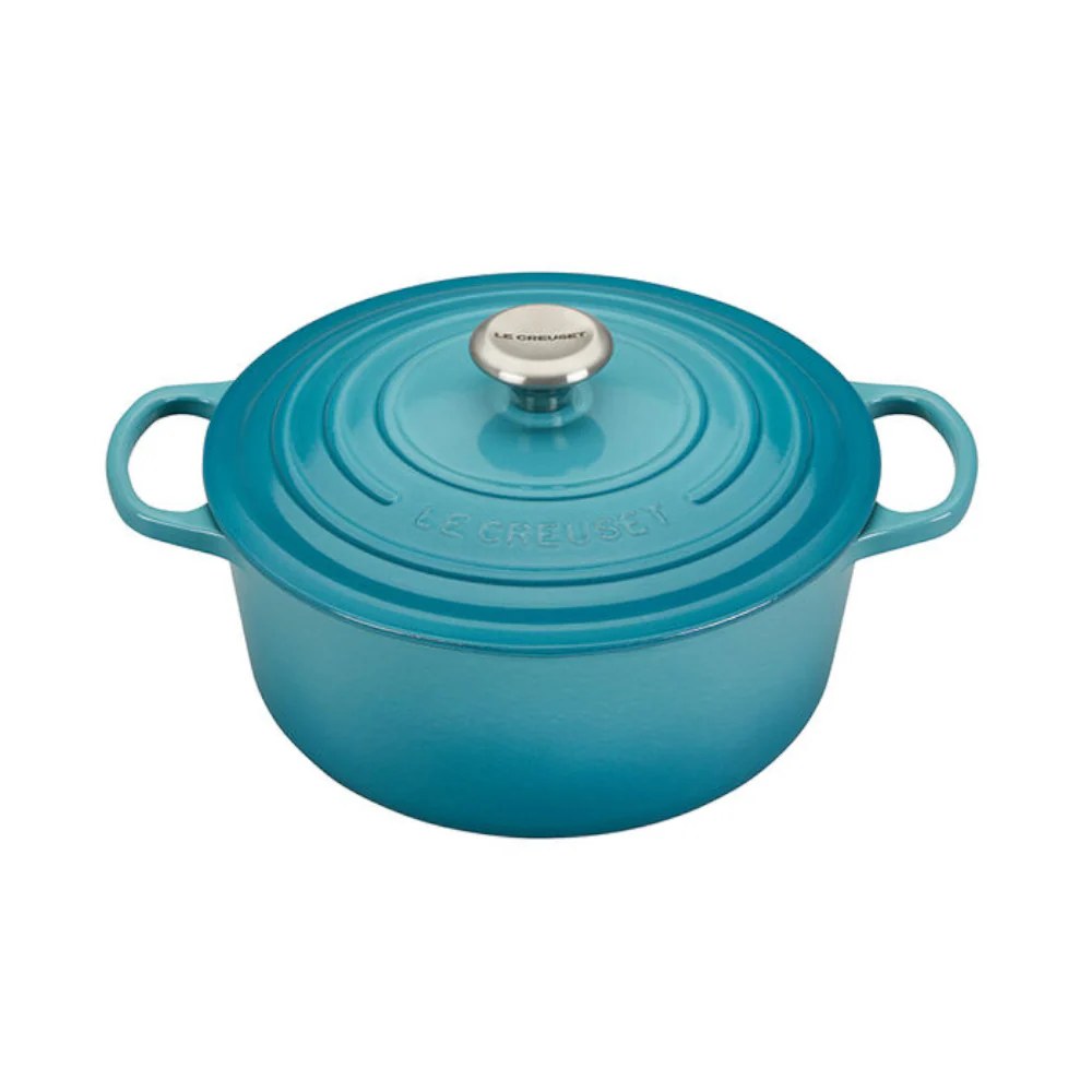 Consigue resultados culinarios excepcionales con la Cocotte Redonda Caribe de 20 cm de Le Creuset, una pieza indispensable en la cocina de cualquier amante de la buena comida. Con casi un siglo de historia, esta cocotte es alabada por cocineros en todo el mundo y es perfecta para preparar estofados, asados, sopas y más. Su diseño ergonómico incluye un pomo resistente al calor, asas grandes para un fácil manejo, y un interior esmaltado que facilita la limpieza. Hecha de hierro fundido, retiene el calor y la humedad para una cocción uniforme y sabores intensificados. Apta para horno, fogones e inducción, está disponible en varios tamaños y colores vibrantes.