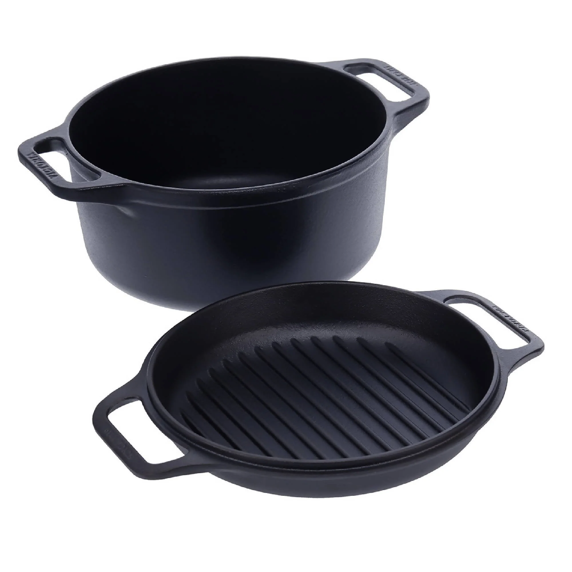 Nuestro combo cooker cumple la función de un Dutch oven, ideal para cocinar a fuego lento. Con este combo podrás preparar estofados, arroz, pollo marinado, pan horneado y mucho más. Además, su tapa se puede utilizar como sartén, brindándote más opciones a la hora de preparar tus recetas.Este horno holandés se ha convertido en el preferido por muchos cocineros, gracias a su gran capacidad de distribuir y retener el calor uniformemente y por más tiempo, dándole un toque único a cada preparación.