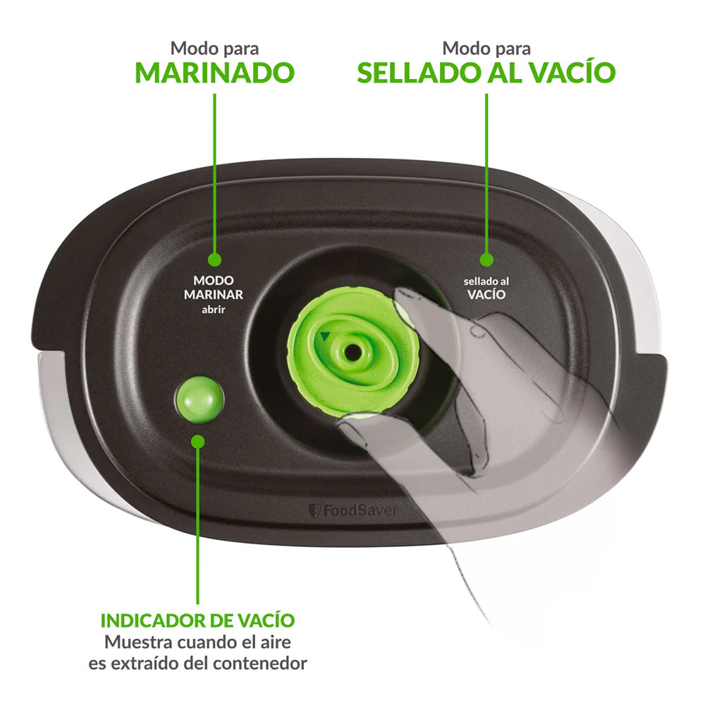 Con su funcionalidad de Marinado, puedes adobar tus alimentos en minutos en vez de horas. Marinar carne, pescado y verduras antes de cocinar es una excelente manera de agregar un sabor intenso a los asados y comidas.Los sistemas de sellado al vacío FoodSaver conservan la frescura y las cualidades nutritivas de tus alimentos, reducen los desperdicios y te ayudan a reducir tu presupuesto en alimentos. Los contenedores, al quedar al vacío no pueden abrirse ni derramarse, lo que los hace ideales para llevar almuerzos al colegio, a un picnic o a la oficina.