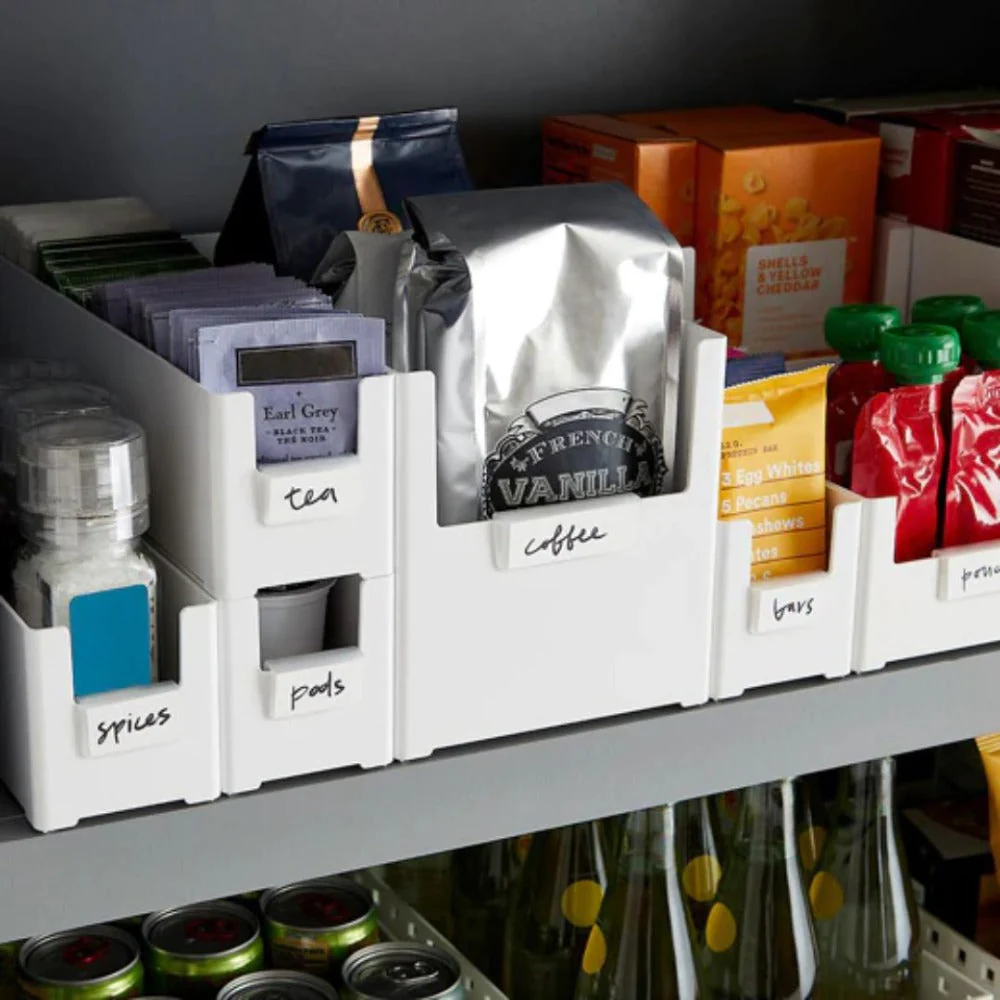 Ya sea que se use solo o con un cajón modular Like-it, nuestros organizadores ayudan a crear un espacio ordenado para utensilios de cocina, suministros para manualidades, herramientas para el hogar, maquillaje y mucho más. Los clips evitan que los organizadores se muevan; incluye etiquetas para despegar y pegar en cada etiqueta del organizador.
