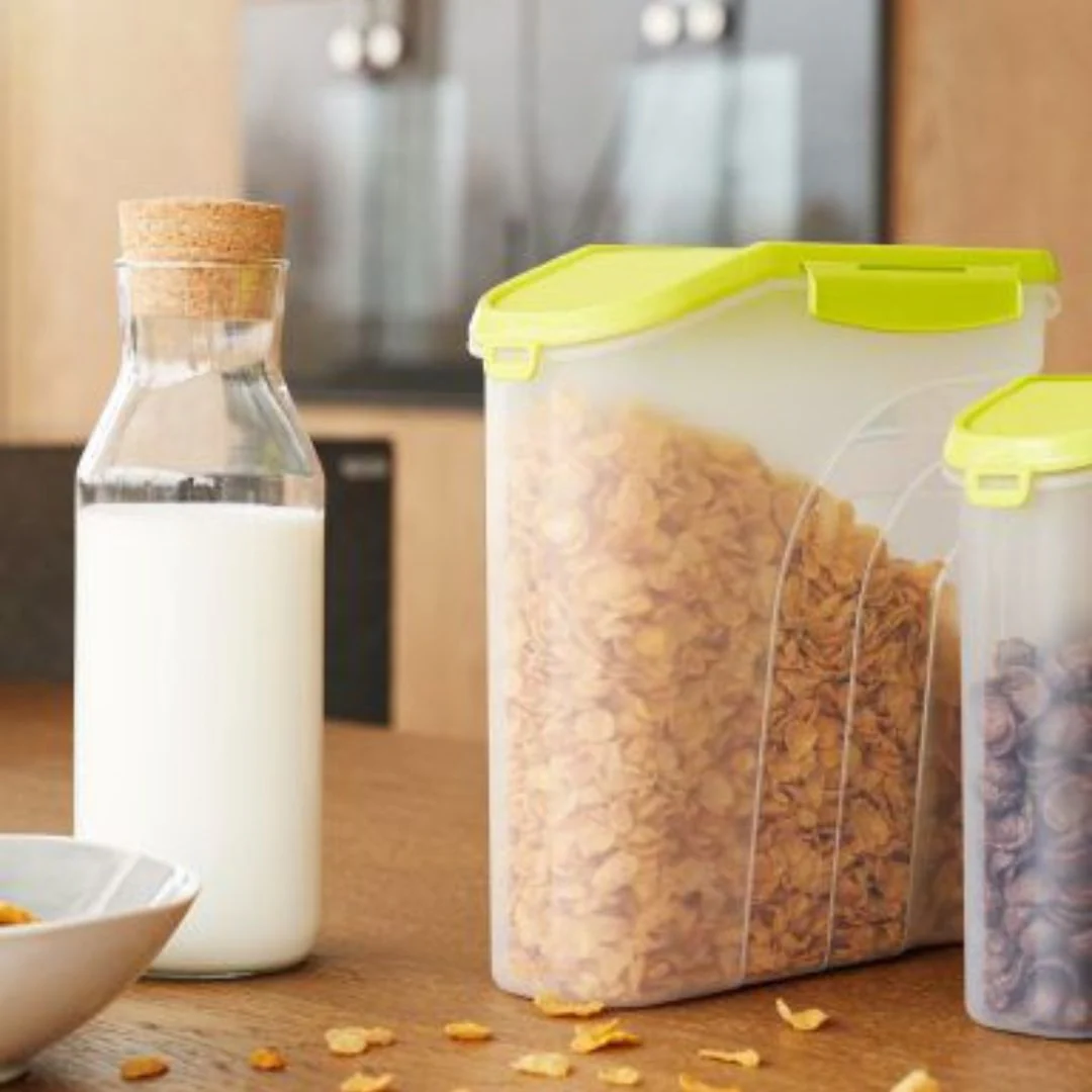Al ser transparente, te permite tener una visión completa en su interior. Ideal para almacenar cereales. Diseño ergonómico. La tapa tiene 2 cierres de clic en los lados para una sujeción segura de la tapa. Libre de BpA y contaminantes similares.