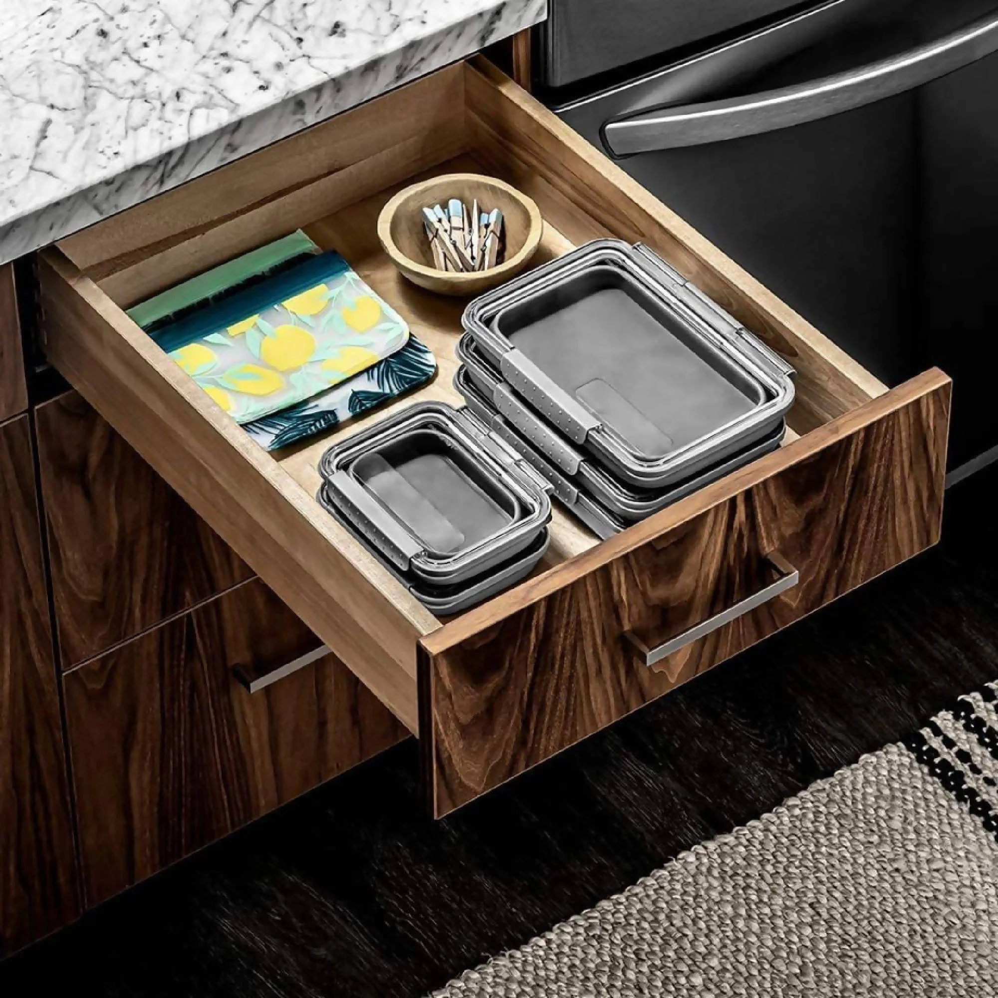 Cree un sistema eficiente de preparación de comidas o almacenamiento de alimentos con los contenedores de almacenamiento de alimentos plegables Lidware de Madesmart. Cada contenedor apto para alimentos se empareja con los contenedores de nevera y despensa de Madesmart para crear el sistema de almacenamiento de alimentos completo definitivo. El diseño plegable único permite una organización eficiente que ahorra espacio y un transporte conveniente cuando no está en uso, mientras que la tapa fijada de forma segura evita que se extravíen accidentalmente. El útil espacio para borrar en seco en la tapa se puede usar para etiquetar fácilmente el contenido y rastrear la frescura para evitar el desperdicio excesivo de alimentos.