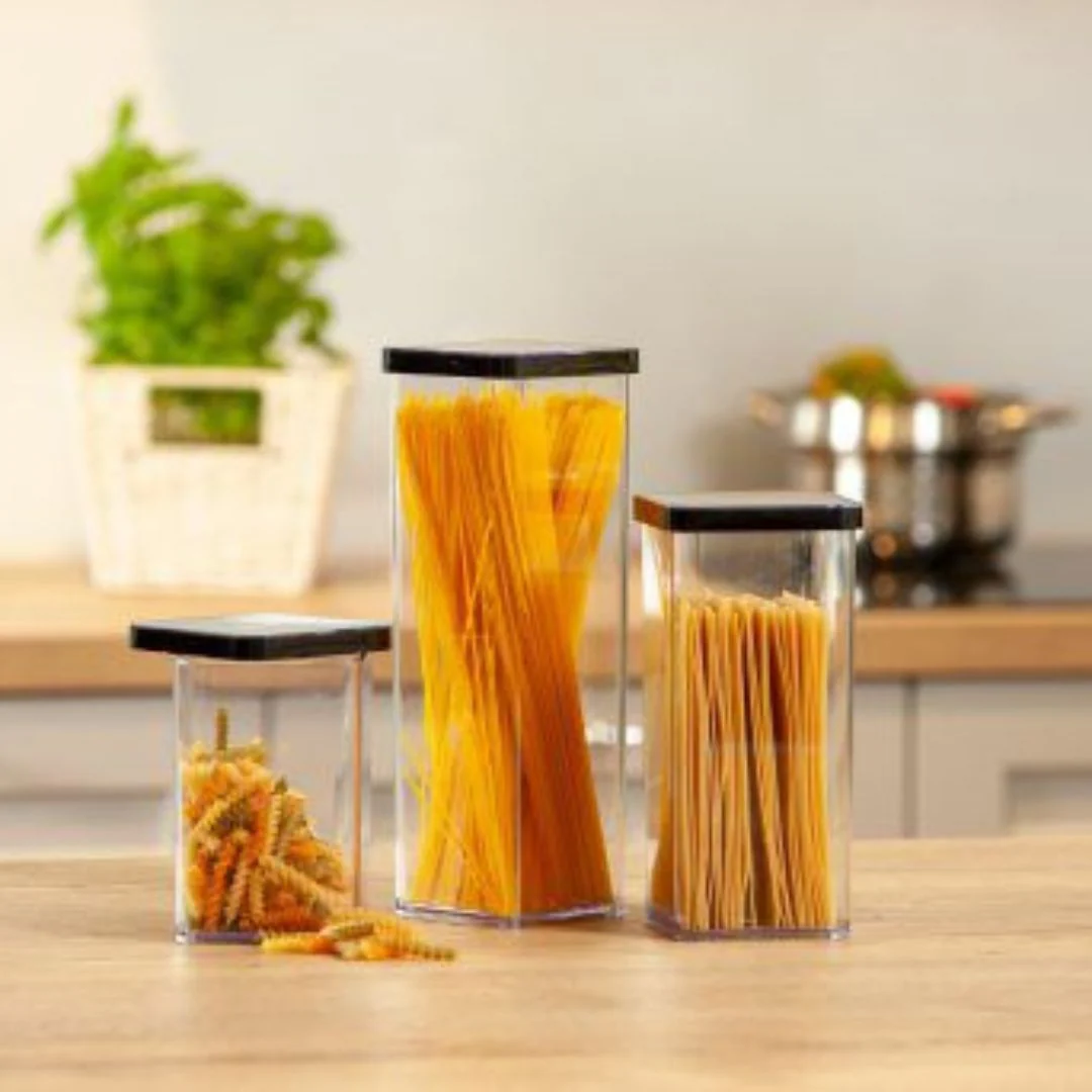 Contenedor de alta transparencia, lo que te permite ver el contenido que tienes o que te hace falta en su interior. Su tapa posee junta de silicona blanca. Cierre hermético,lo que ayuda a mantener los alimentos frescos. Puedes almacenar diferentes alimentos como arroz o pastas, protegiéndolos de las polillas. Este contenedor de alimentos también lo puedes usar en el refrigerador o congelador.