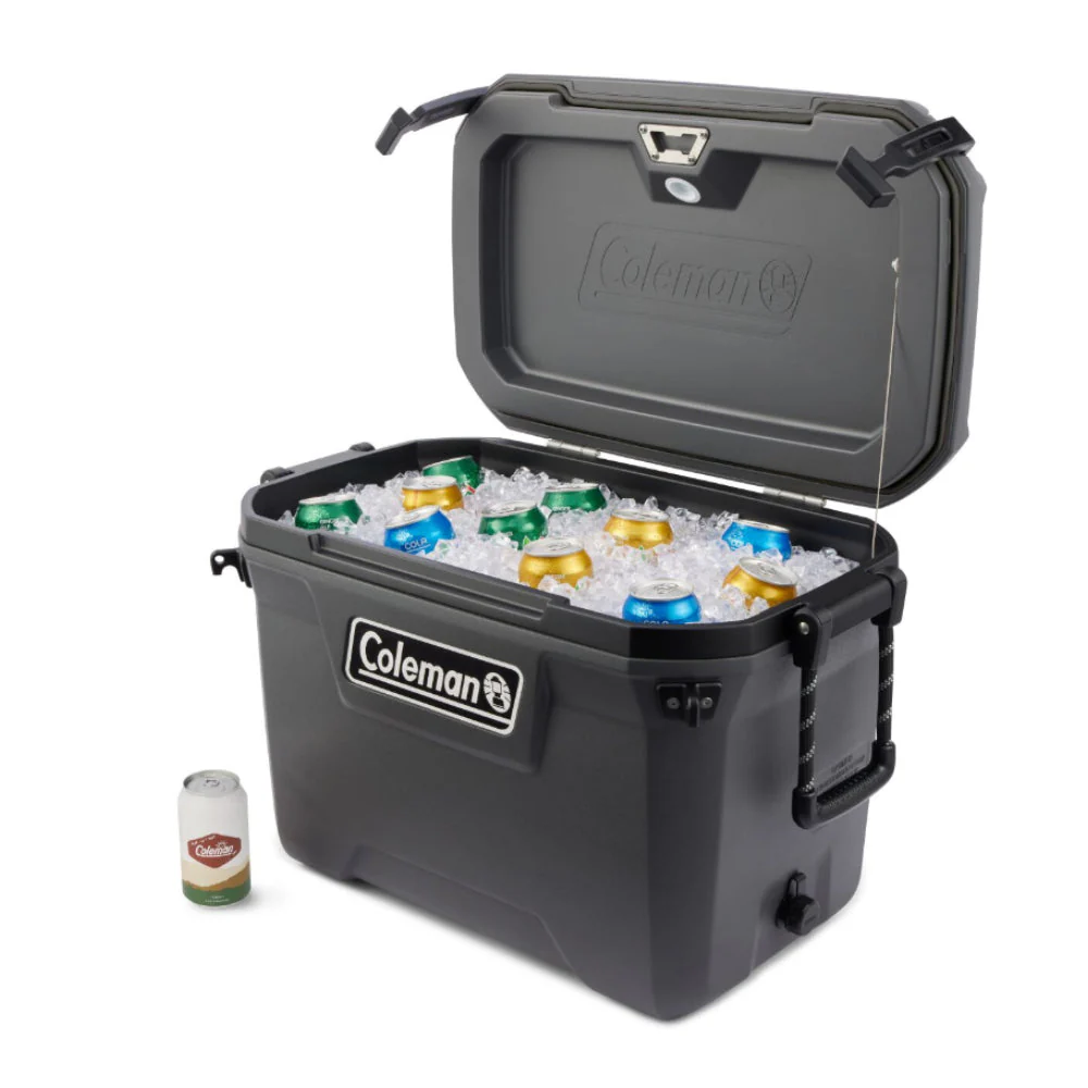 Saluda a los coolers de la serie Convoy™ de Coleman, una colección diseñada para excursiones de un día, aventuras de larga distancia y todo lo demás. El cooler de 55 cuartos de la serie Convoy™ de alta resistencia puede contener bebidas para todos, lo que lo convierte en un éxito en campamentos y picnics. Cada sorbo debe ser frío, por eso agregamos una tapa, un cuerpo y un pestillo de alta resistencia completamente aislados.