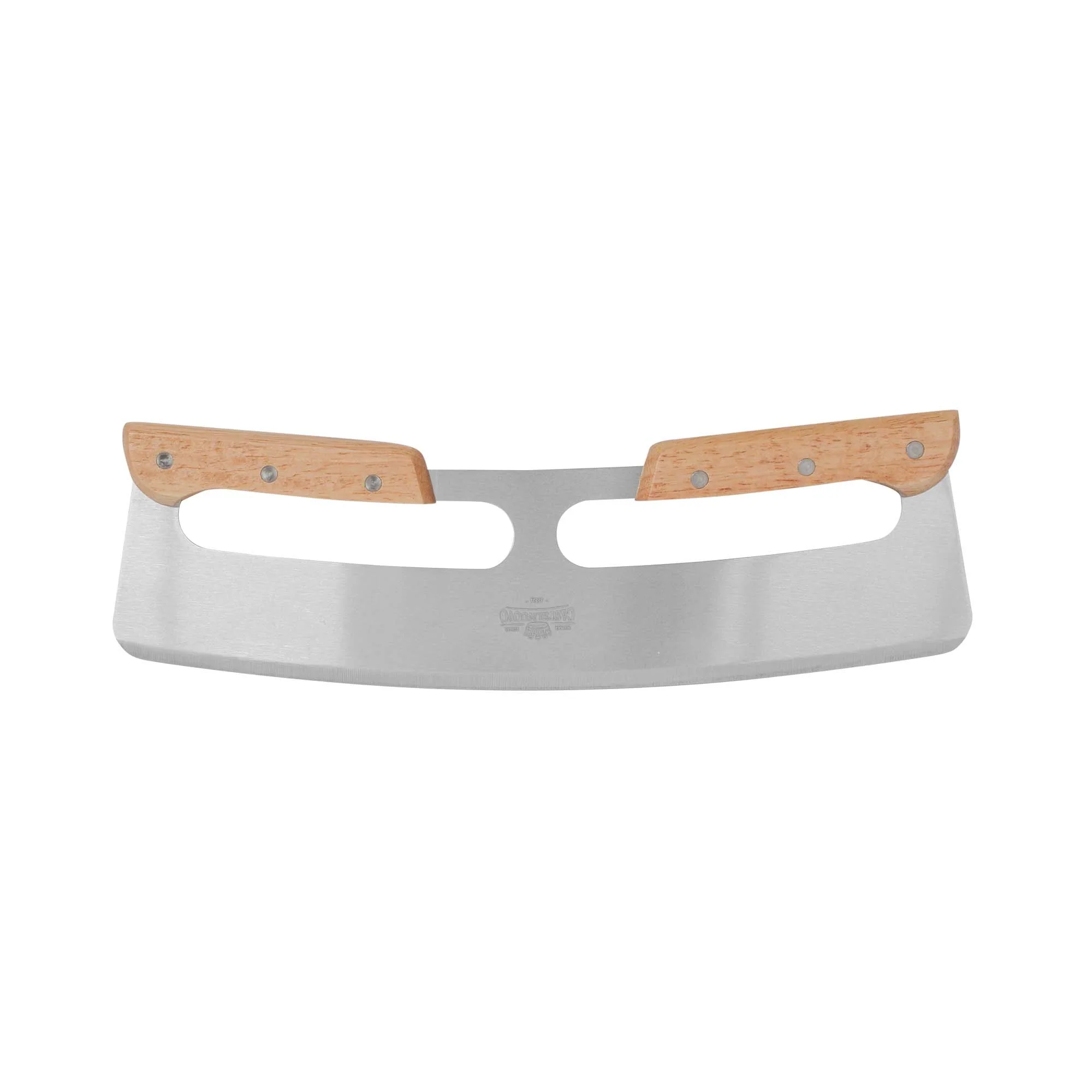 Fabricado en acero inoxidable resistente y duradero, este cortador es capaz de soportar un uso constante y prolongado en una cocina ocupada. Su diseño curvo tipo mezzaluna, con una hoja de 35 cm de longitud y 9,5 cm de ancho, es perfecto para cortar pizzas de cualquier tamaño y grosor con facilidad y precisión. Además, su mango ergonómico proporciona un agarre cómodo y seguro para un fácil manejo. El cortador de pizza tipo mezzaluna es fácil de usar y su diseño curvo permite que la hoja corte a través de la pizza con facilidad y rapidez, sin arrastrar los ingredientes. También es fácil de limpiar y mantener, lo que garantiza su uso a largo plazo. Con este cortador de pizza, podrás cortar tus pizzas con facilidad y precisión, lo que resultará en una pizza perfectamente cortada lista para ser disfrutada.
