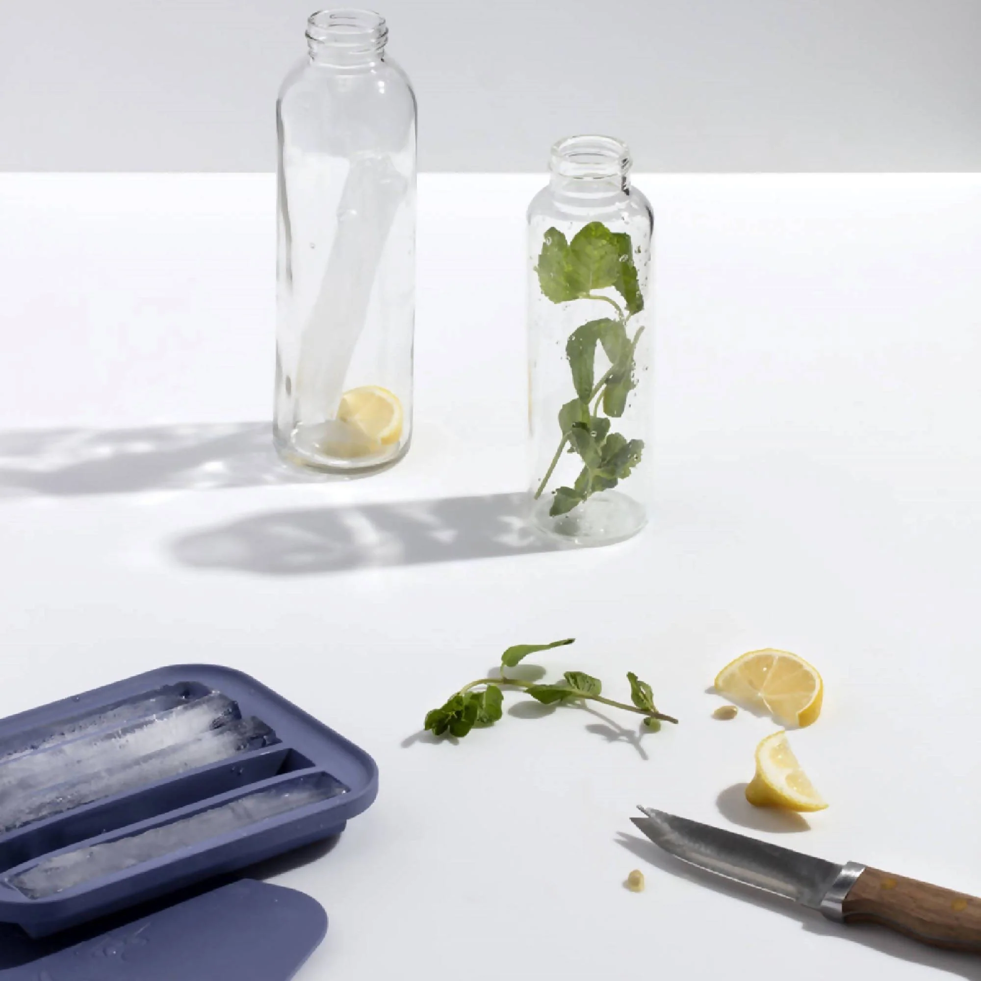 Esta bandeja hace cinco lanzas de hielo de 15 cm que encajan perfectamente en la mayoría de las botellas. Marco de acero interno. Llene y transfiera las bandejas al congelador sin derrames sucios, gracias a nuestro marco interno estabilizador. Cubos independientes. Elimina fácilmente cubos individuales gracias a nuestro diseño de silicona flexible. Tapa protectora. Elimina la absorción de olores del congelador, al mismo tiempo que permite apilar fácilmente varias bandejas. Rinde: Cinco lanzas de 11,5 cm. Materiales: silicona, acero inoxidable. Apto para lavavajillas. Sin BPA