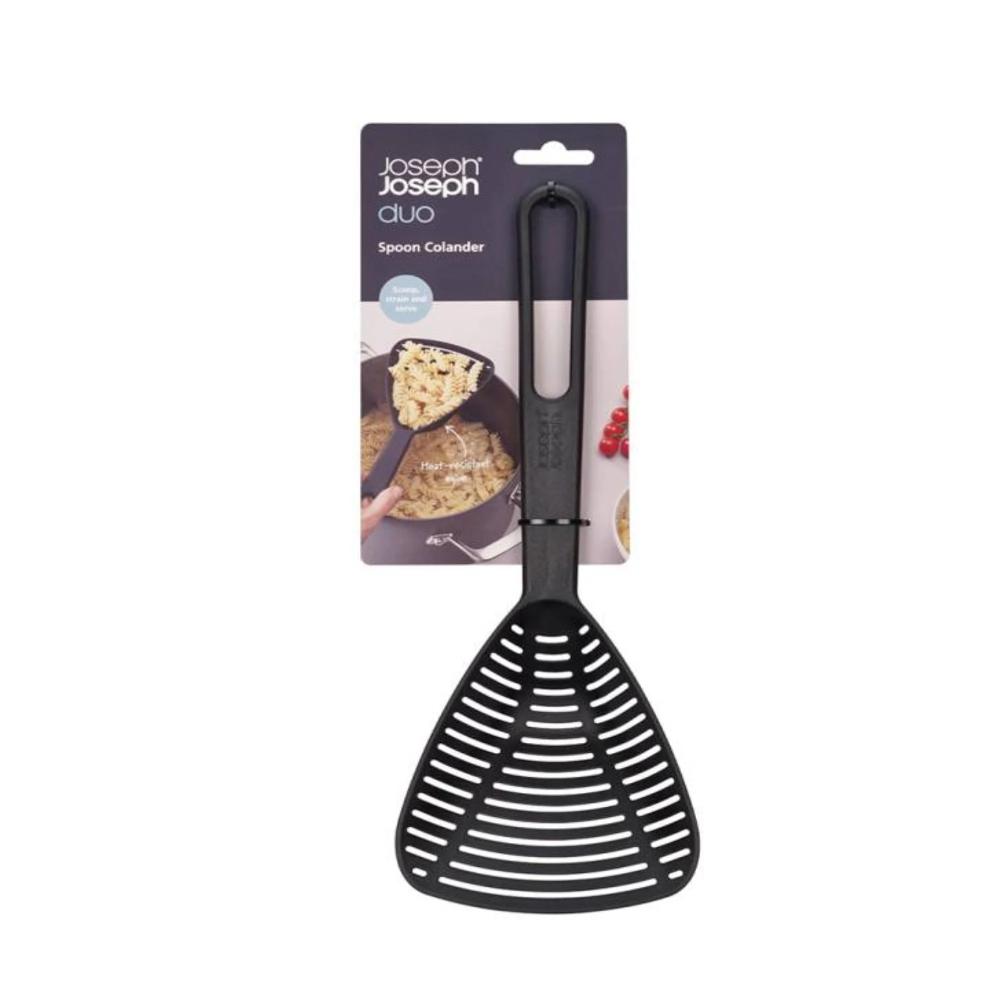 La Cuchara Colador de Joseph Joseph es la herramienta perfecta para sacar, drenar y servir una variedad de alimentos, desde pastas hasta verduras y fritos. Su diseño innovador te permite apoyarla en el borde de la olla para drenar los líquidos directamente, facilitando el proceso de cocción y minimizando el desorden en la cocina. Con una resistencia al calor de hasta 200°C, esta cuchara colador es resistente y duradera, garantizando un rendimiento confiable en cada uso. Simplifica tu experiencia culinaria con la Cuchara Colador y disfruta de resultados impecables en cada plato.