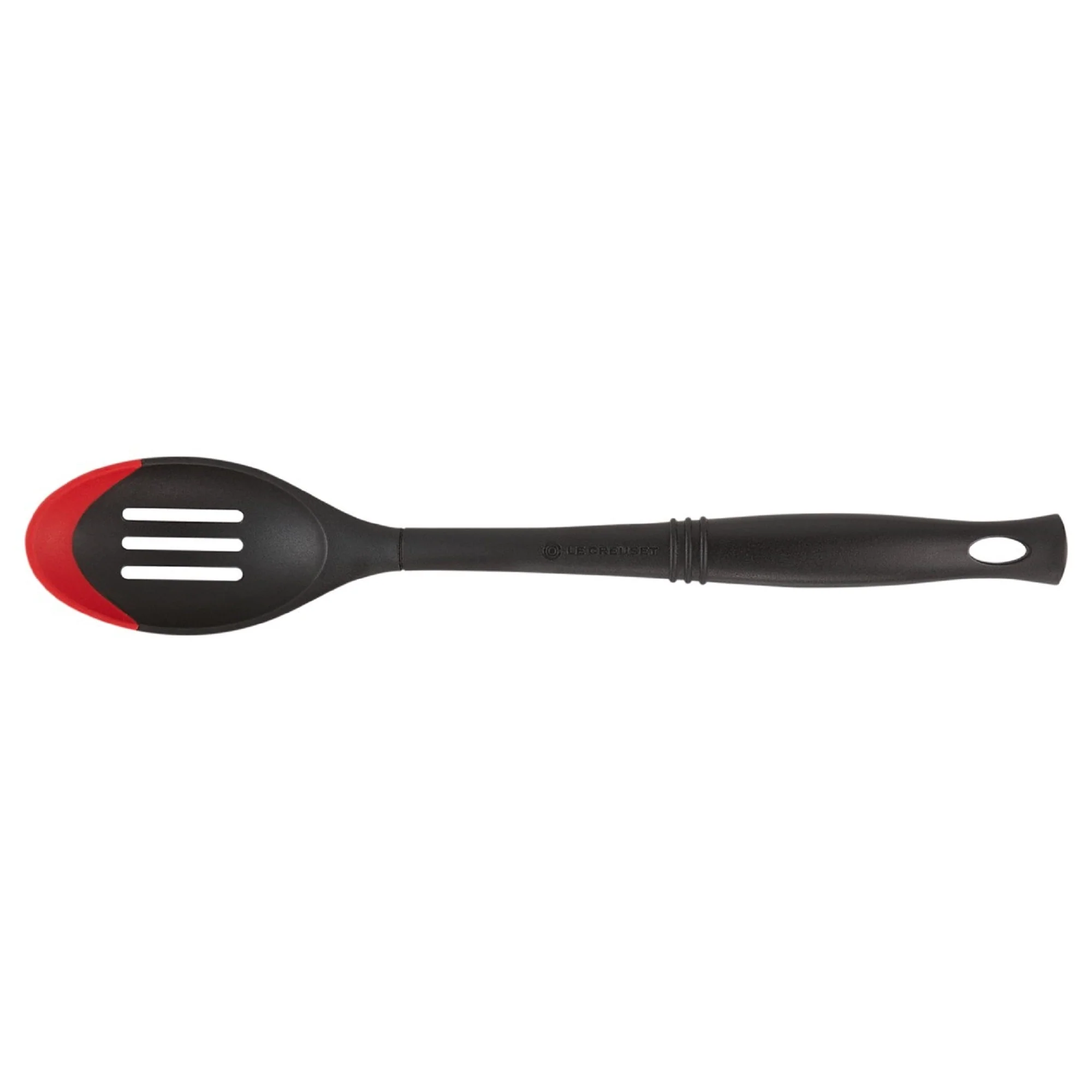 La cuchara espumadera Revolution Bi de silicona y nylon reforzado combina fuerza, flexibilidad y delicadeza para servir verduras y pastas con precisión. Su borde de silicona llega a cada rincón de la olla, arrastrando los alimentos sin dañarlos. Resiste hasta 250 °C, es apta para lavavajillas, no retiene olores ni manchas y su mango ergonómico patentado brinda máximo control. Fabricada con materiales de alta calidad, su diseño curvado permite maniobrar fácilmente en sartenes y cacerolas. Ideal para una cocina exigente, duradera e impecable.