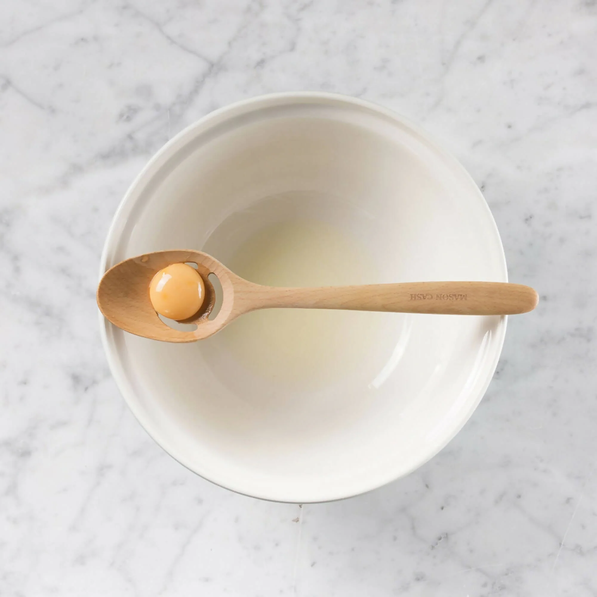 ¡Aproveche al máximo cada utensilio de cocina con la colección Innovative Kitchen de Mason Cash! Esta cuchara ranurada tiene una doble función, además de un separador de huevos, es ideal para remover y sacar ingredientes del agua, salsas o aceites. Las ranuras tienen una forma ideal para permitir que las claras de huevo caigan mientras deja la yema de huevo intacta y las ranuras en la parte posterior del mango de la cuchara permiten que se asiente de forma segura en un tazón para mezclar o en un recipiente para pudín para que pueda romper los huevos y agregar las claras directamente en un tazón y las yemas en otro. Una buena cuchara ranurada es esencial para cualquier cocina; ¡Haz tuya esta Cuchara Madera con Separador Yema Huevo Mason Cash!