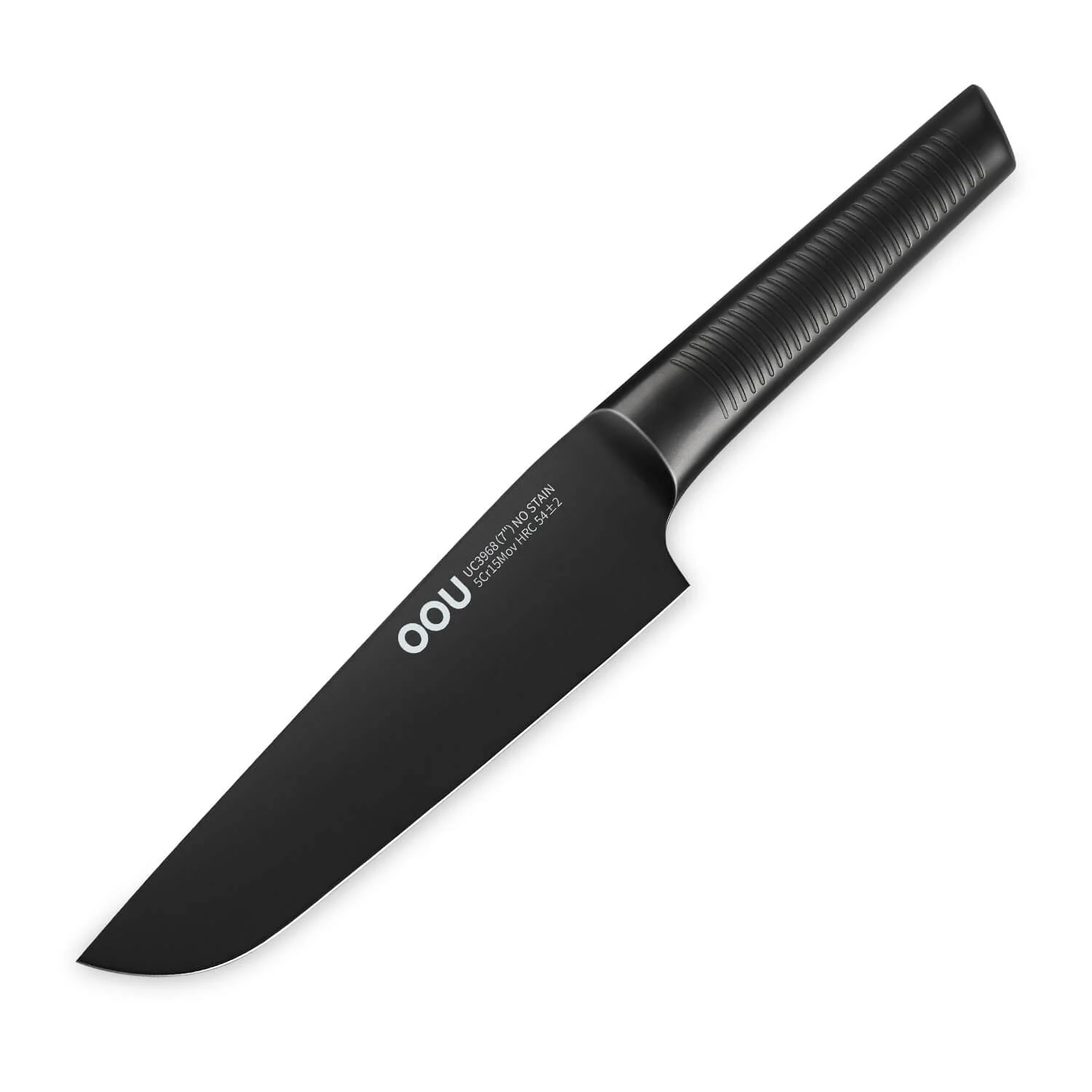 La serie Black Shark OOU ofrece un excepcional cuchillo de chef fabricado con un acero inoxidable compuesto de cromo, molibdeno y vanadio (X50CRMOV15), que brinda una mejora notable en su estructura y durabilidad. Con una impresionante dureza HRC56, este cuchillo garantiza un rendimiento óptimo y una capacidad de corte excepcional. Su afilado ángulo de 16 grados asegura una precisión y nitidez incomparables. El diseño de este cuchillo es totalmente forjado, lo que garantiza una solidez y resistencia excepcionales, y su transición suave del mango a la hoja brinda un equilibrio perfecto y un agarre cómodo durante el uso. Además, está equipado con tecnología de vanguardia que lo hace resistente a la oxidación, corrosión y bacterias, lo que lo convierte en una opción higiénica y duradera para la cocina. La serie Black Shark OOU ha sido creada para satisfacer las necesidades de los chefs más exigentes y amantes de la cocina que buscan un cuchillo de alta calidad y rendimiento impecable.
