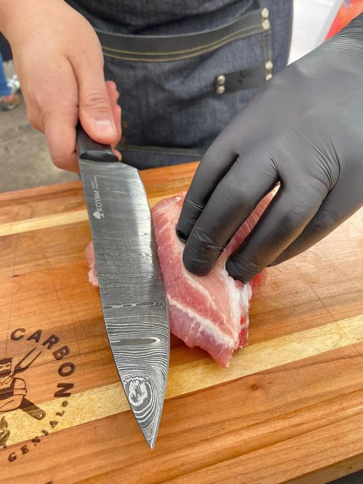 Este cuchillo de Damasco Premium, hecho a mano, es una verdadera obra maestra. La hoja, fabricada de acero Damasco, es de la más alta calidad, con mango G10 negro con un hermoso diseño. Este cuchillo de lujo es perfecto para parrillar, para preparar tus mas deliciosas preparaciones y una herramienta imprescindible en cada cocina. La hoja está hecha por una aleación de aceros 1095/15N20 (más de 512 Capas verdaderas) forjada a mano formando hermosos patrónes únicos. El Acero de Damasco posee un alto contenido en carbono, para dar una capacidad de filo excelente y duradero.